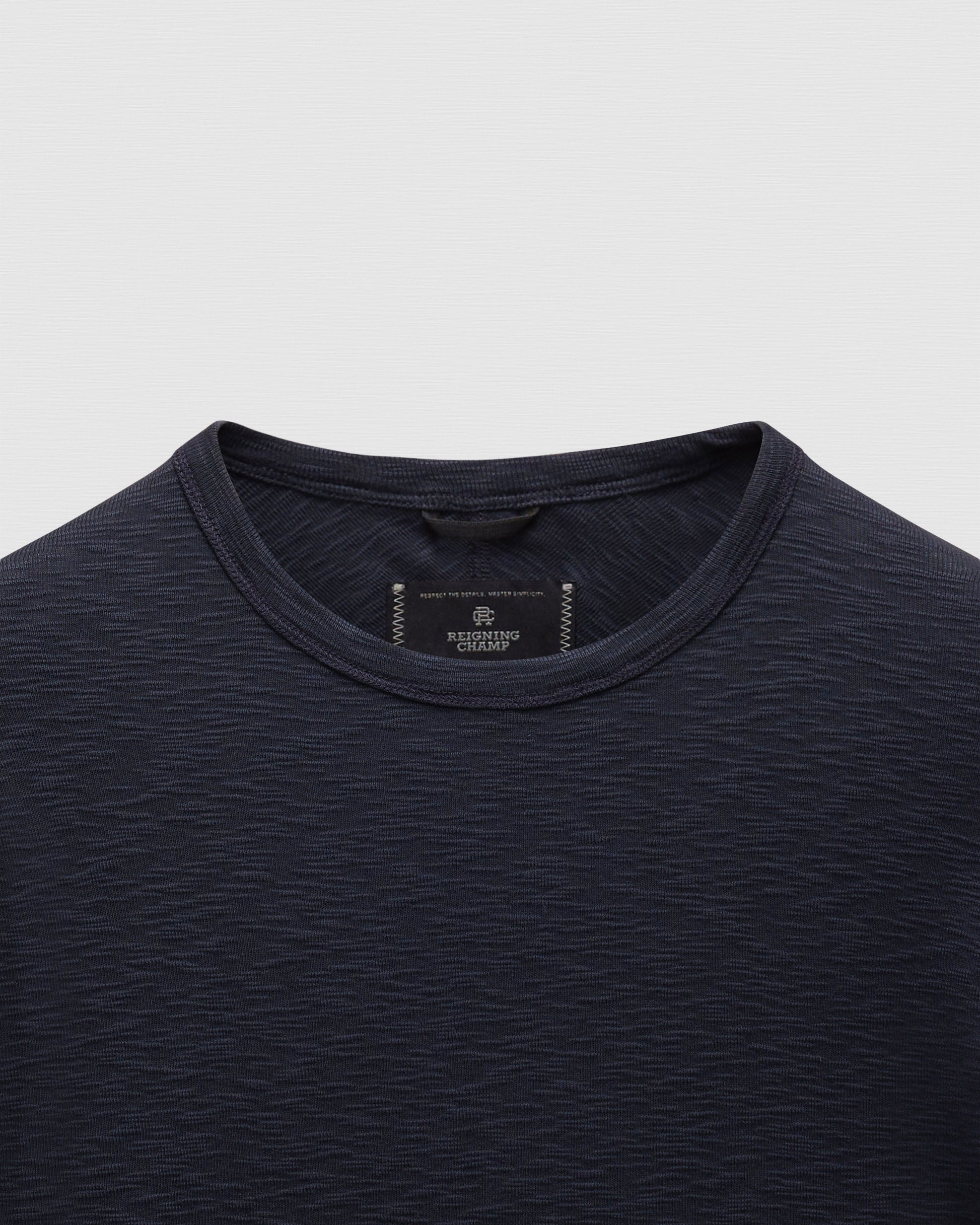 This slim-fit long sleeve, crafted from textured slub rib cotton, elevates casual wear with its distinctive look and feel. Designed with a fine rib-bound collar, signature flatlock seams, a flat hem, and rear shoulder yoke for added durability and structure.