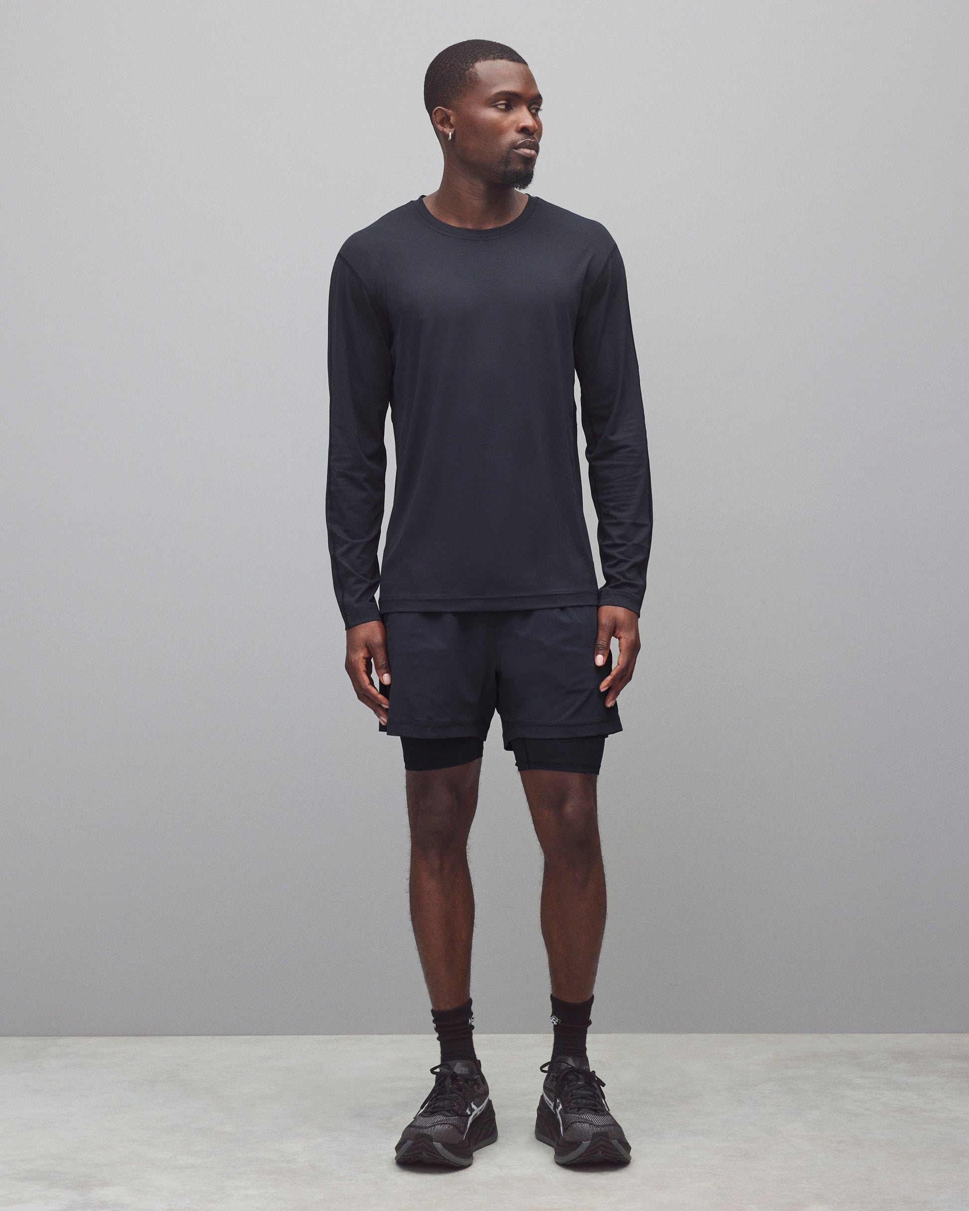 Our all-purpose active short made from lightweight stretch nylon, with fast wicking ability and resistance to pilling and abrasion. Updated with a streamlined standard fit and 5" inseam length. Designed with a quick-drying compression liner, laser-cut mesh side panels, soft mesh waistband, slash pockets, and a sweat-resistant zip pocket for your phone or small essentials.