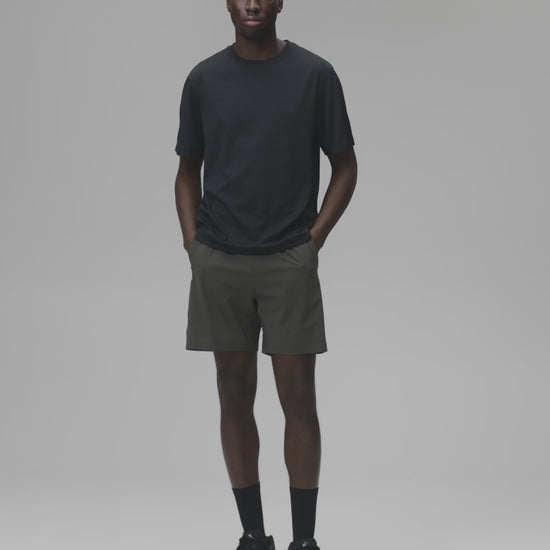 Our all-purpose active short made from lightweight stretch nylon, with moisture wicking ability and resistance to pilling and abrasion. Featuring a full-cut standard fit and 7" inseam length. Designed with laser-cut mesh side panels, soft mesh waistband, slash pockets, and a sweat-resistant zip pocket for your phone or small essentials.