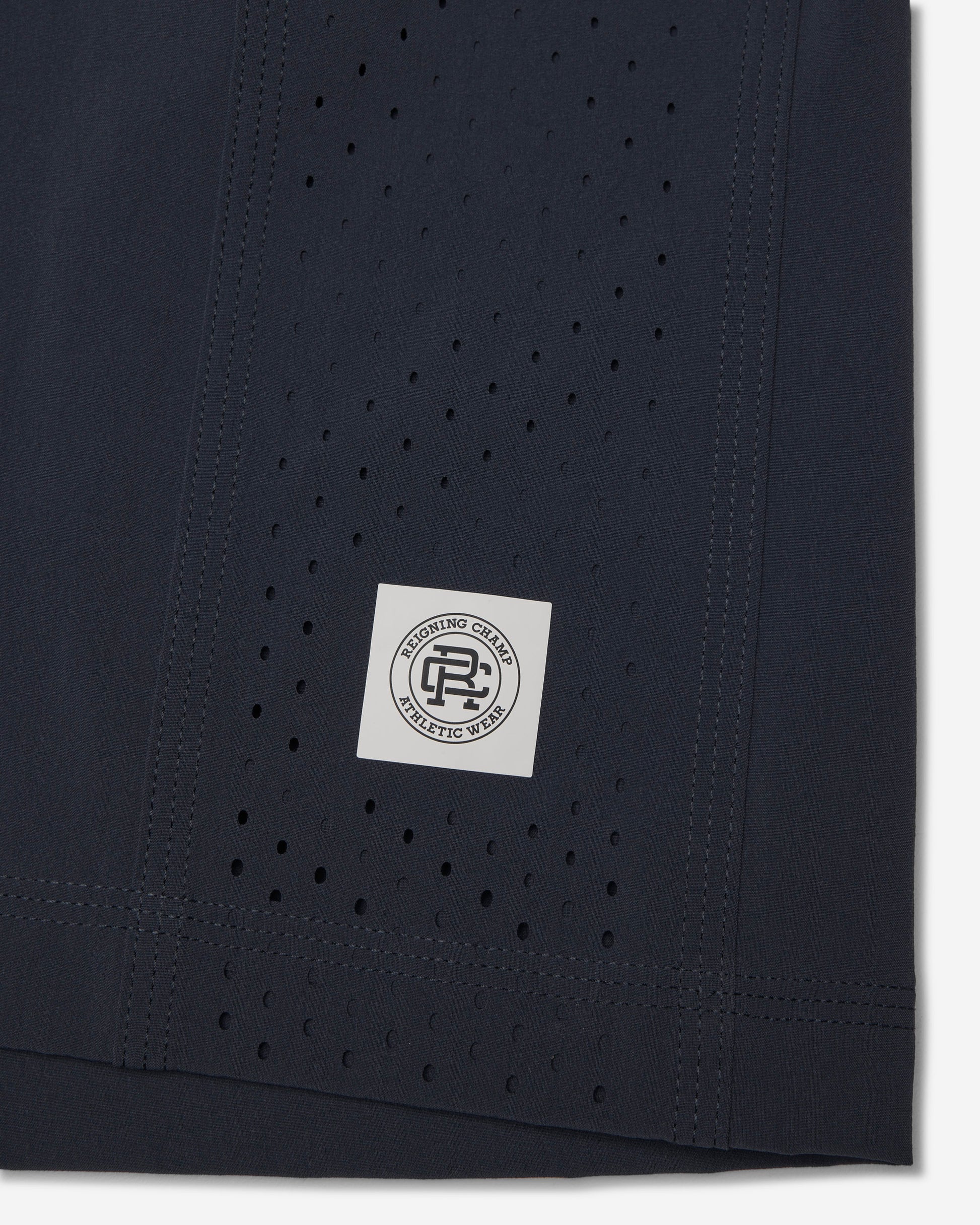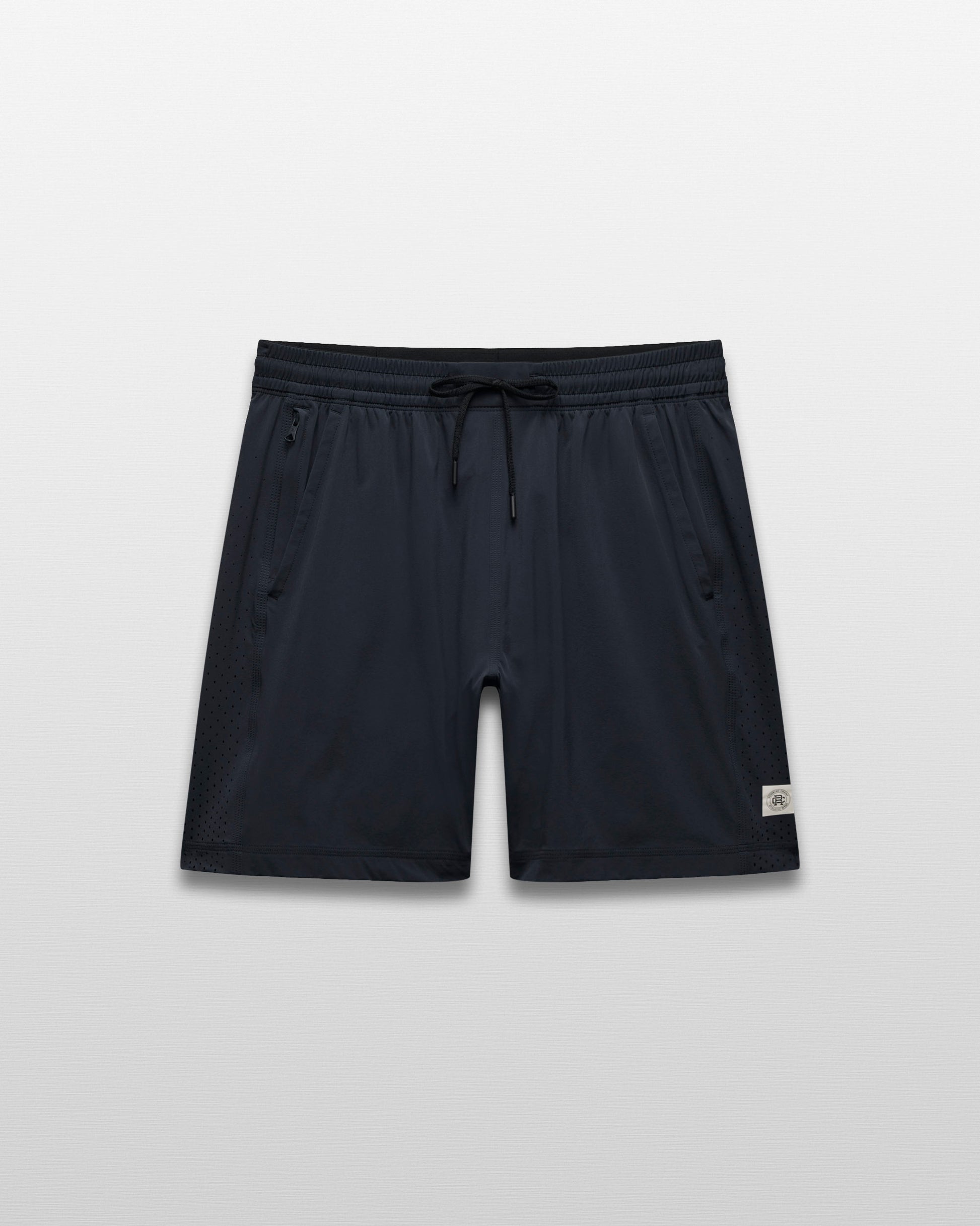 Our all-purpose active short made from lightweight stretch nylon, with moisture wicking ability and resistance to pilling and abrasion. Featuring a full-cut standard fit and 7" inseam length. Designed with laser-cut mesh side panels, soft mesh waistband, slash pockets, and a sweat-resistant zip pocket for your phone or small essentials.