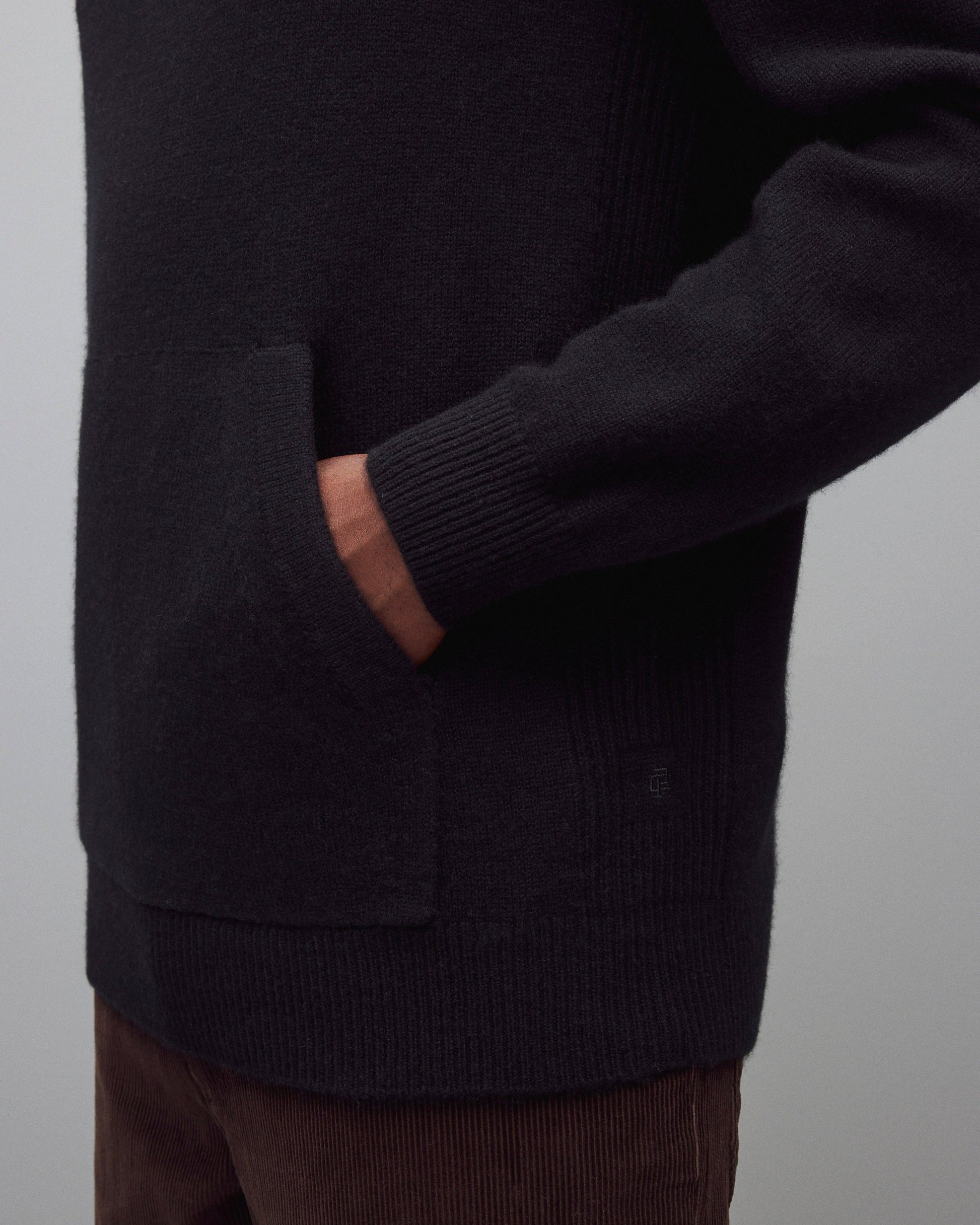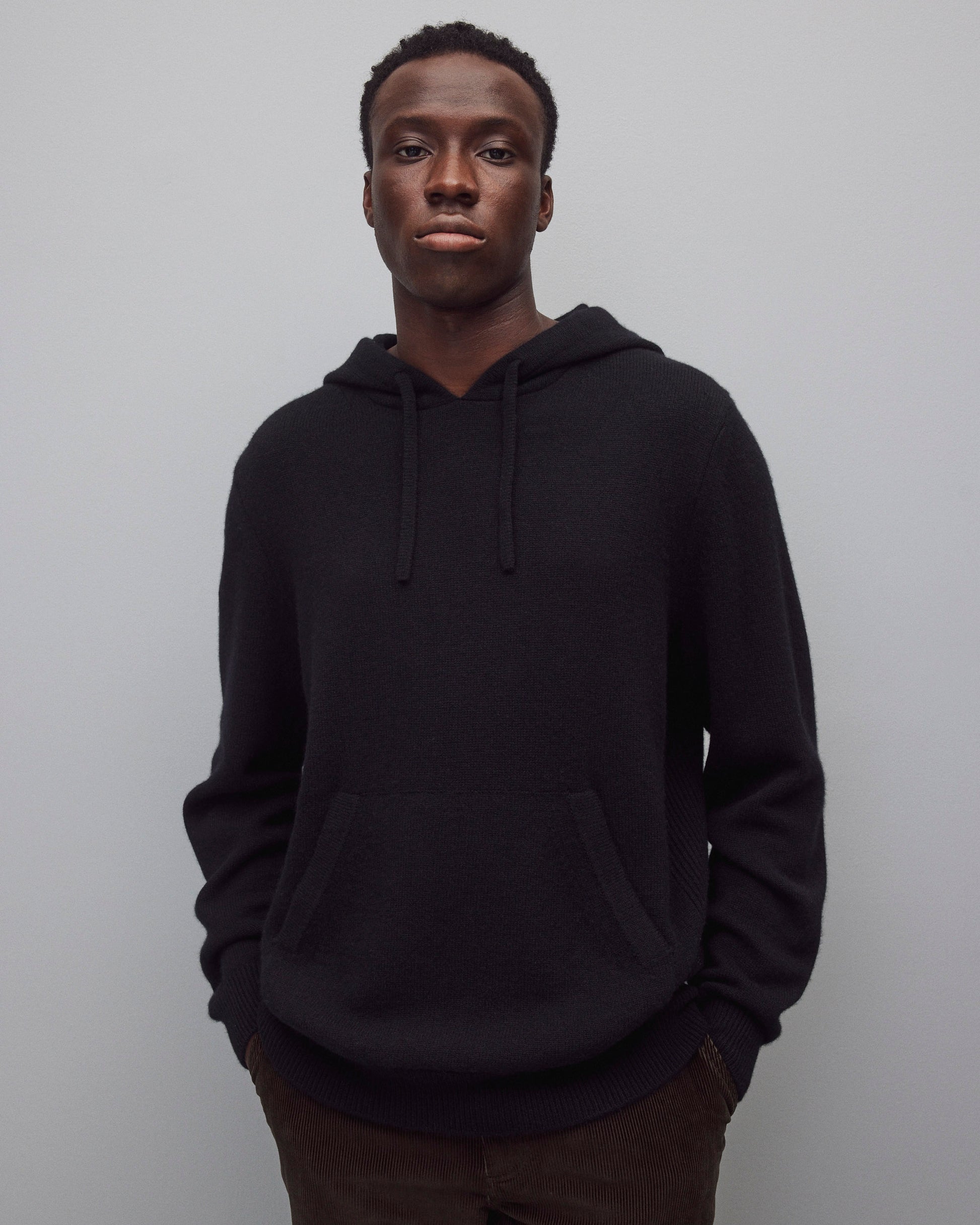 This hooded sweater is knit from the finest cashmere, prized for its natural warmth and ultrasoft hand. Cut in a standard fit with fully fashioned seams, and finished with a drawstring rib hood, cuffs, and hem. Rib side gussets and lycra-blended trim enhance shape retention and durability.