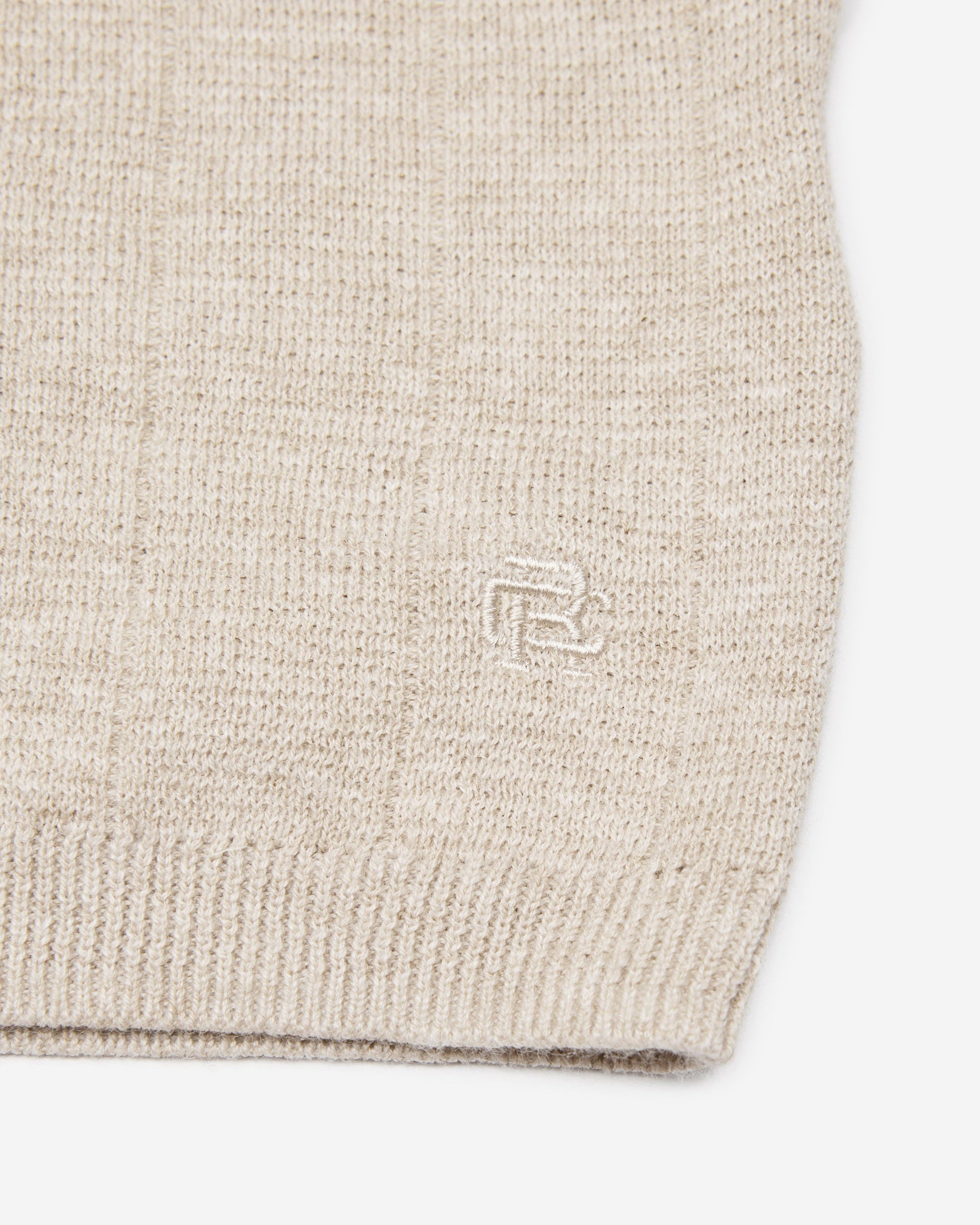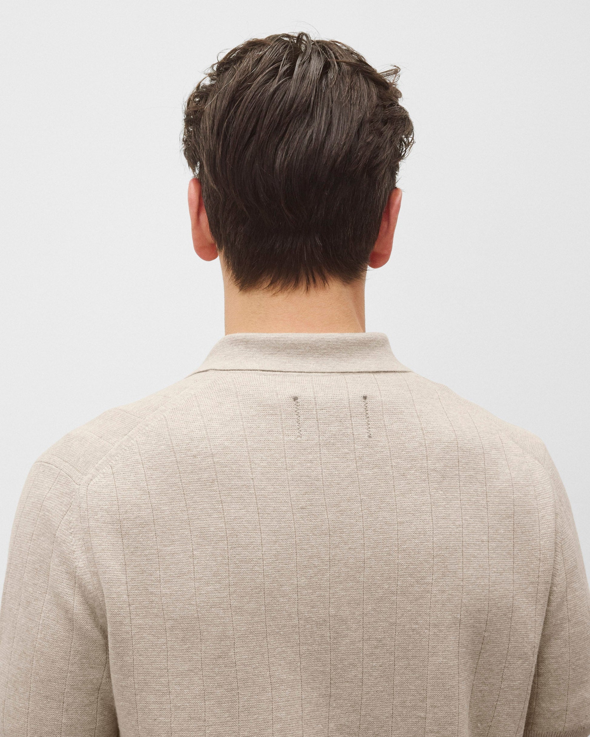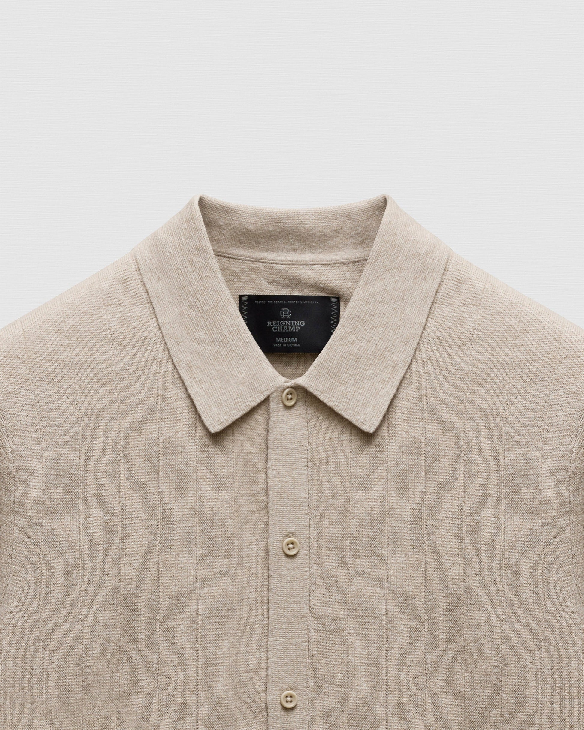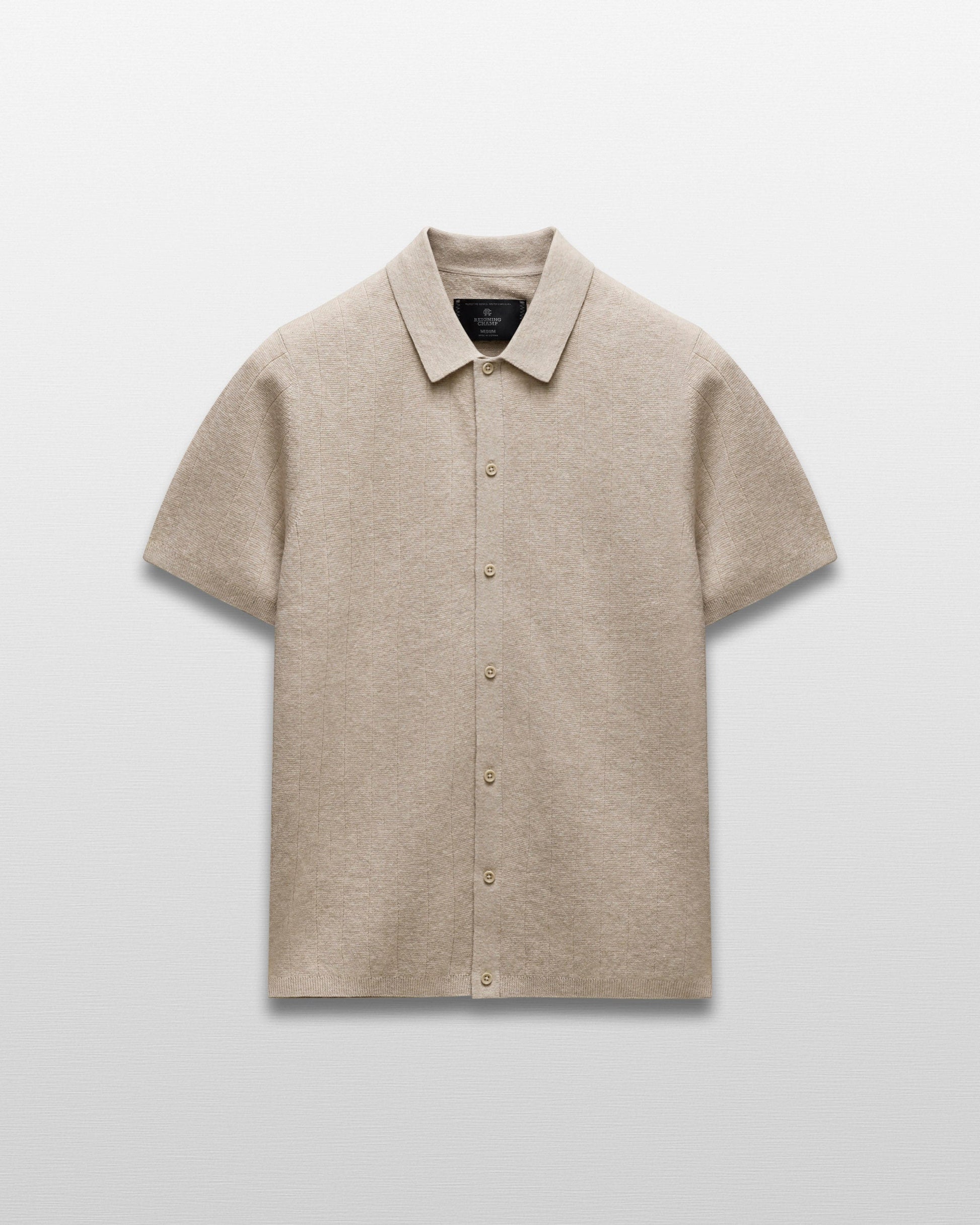 This short sleeve knit shirt is crafted from a breathable cotton-linen blend with the softest touch. Featuring a standard fit with fully fashioned seams. Designed with a half-milano stitch collar and placket, tonal logo buttons, and lycra-bound cuffs and hem.