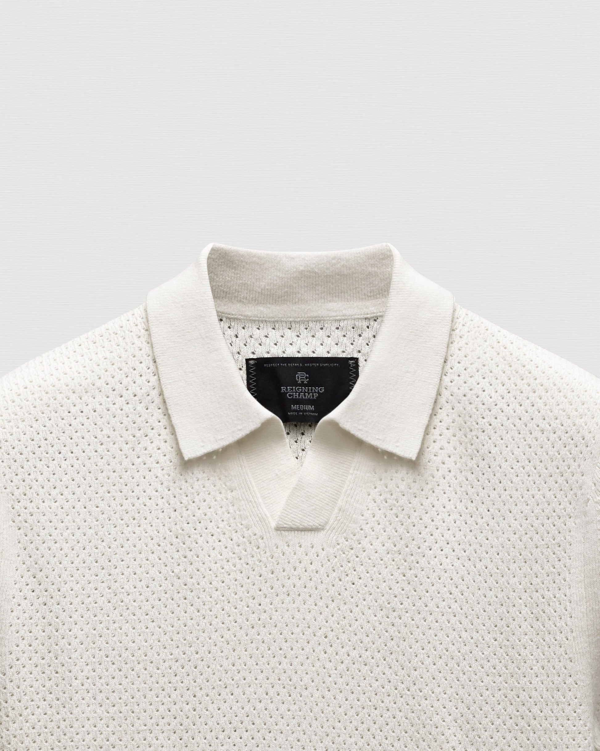 A warm‑weather polo with elevated texture and natural airflow. Crafted from a soft, cotton‑linen blend in an open mesh knit that keeps you cool while maintaining a refined drape. Designed in our Standard fit with full‑cut proportions.