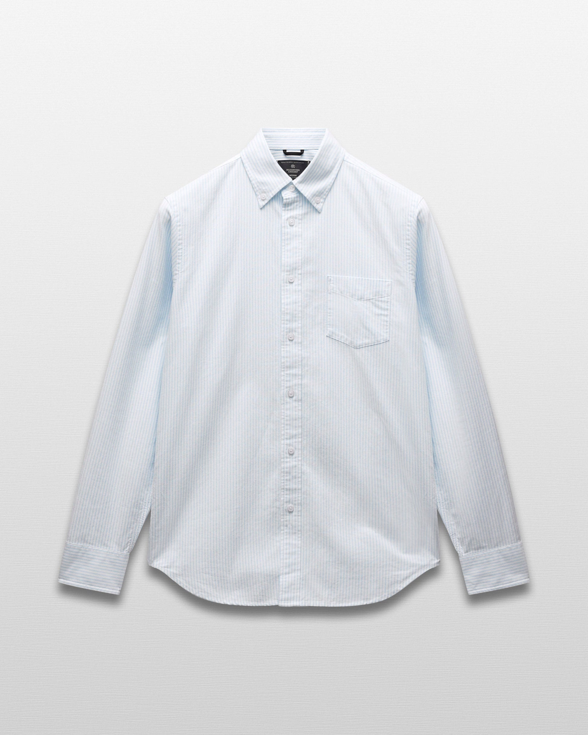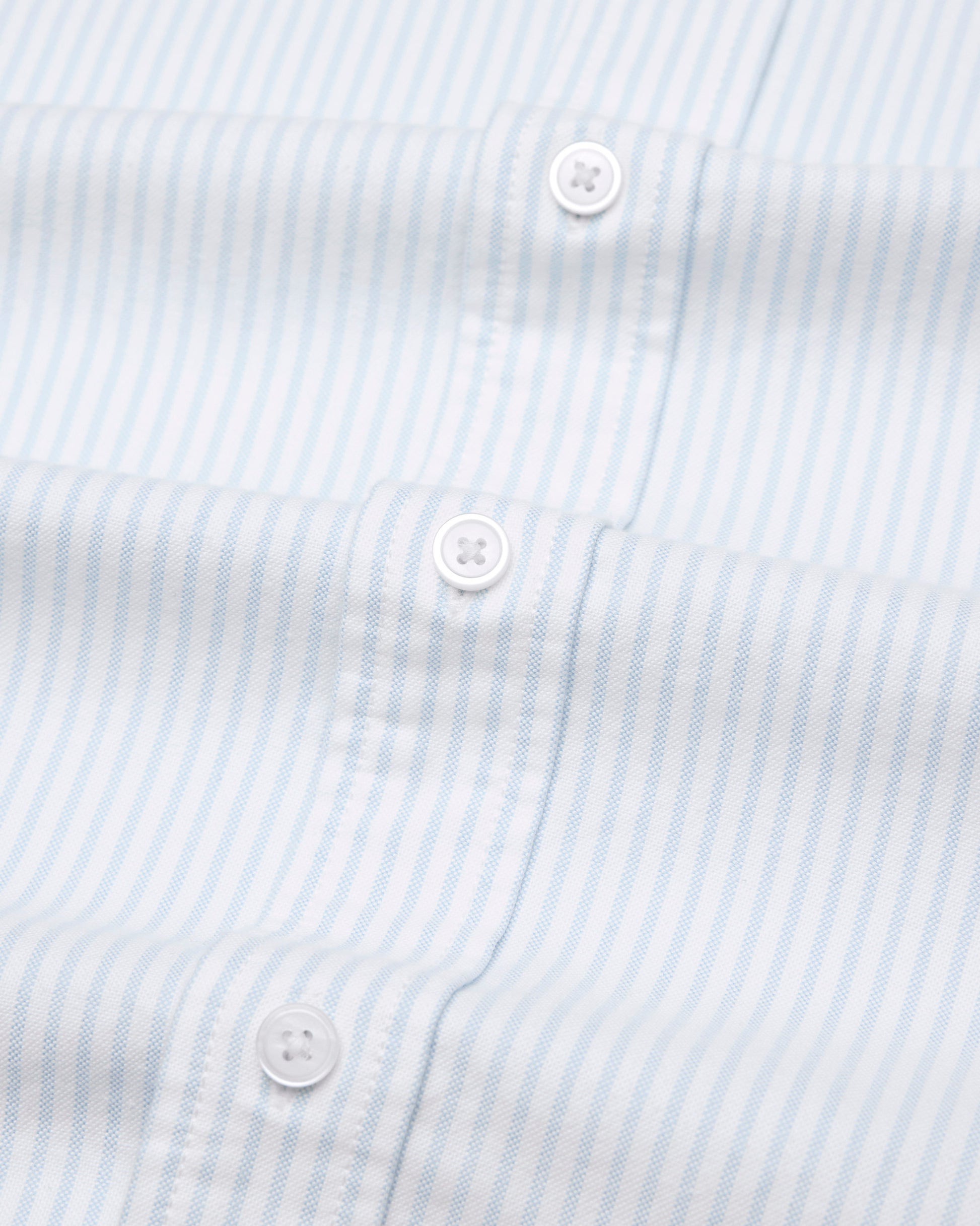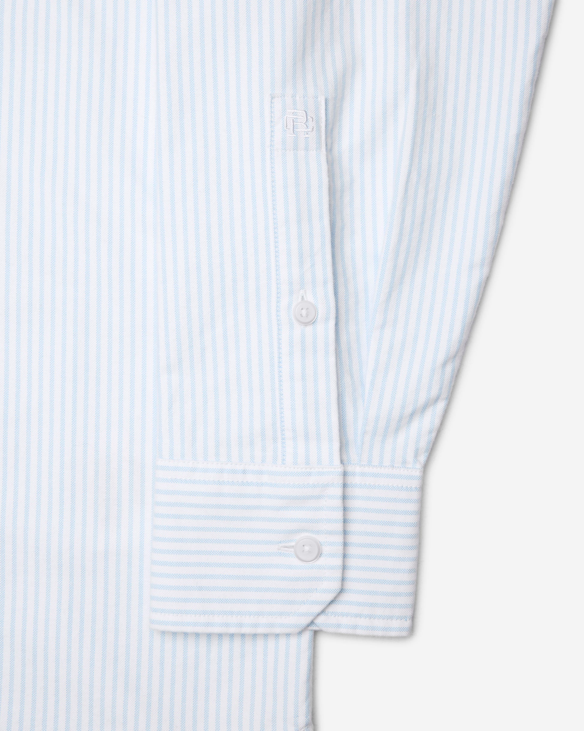 This button down shirt is crafted from classic cotton oxford in a versatile, year-round weight. Designed in a standard fit to complement all body types, with side gussets for a subtly tailored shape. Finished with faux shell buttons, a chest pocket, curved hem, and tonal monogram embroidery at the left cuff placket.