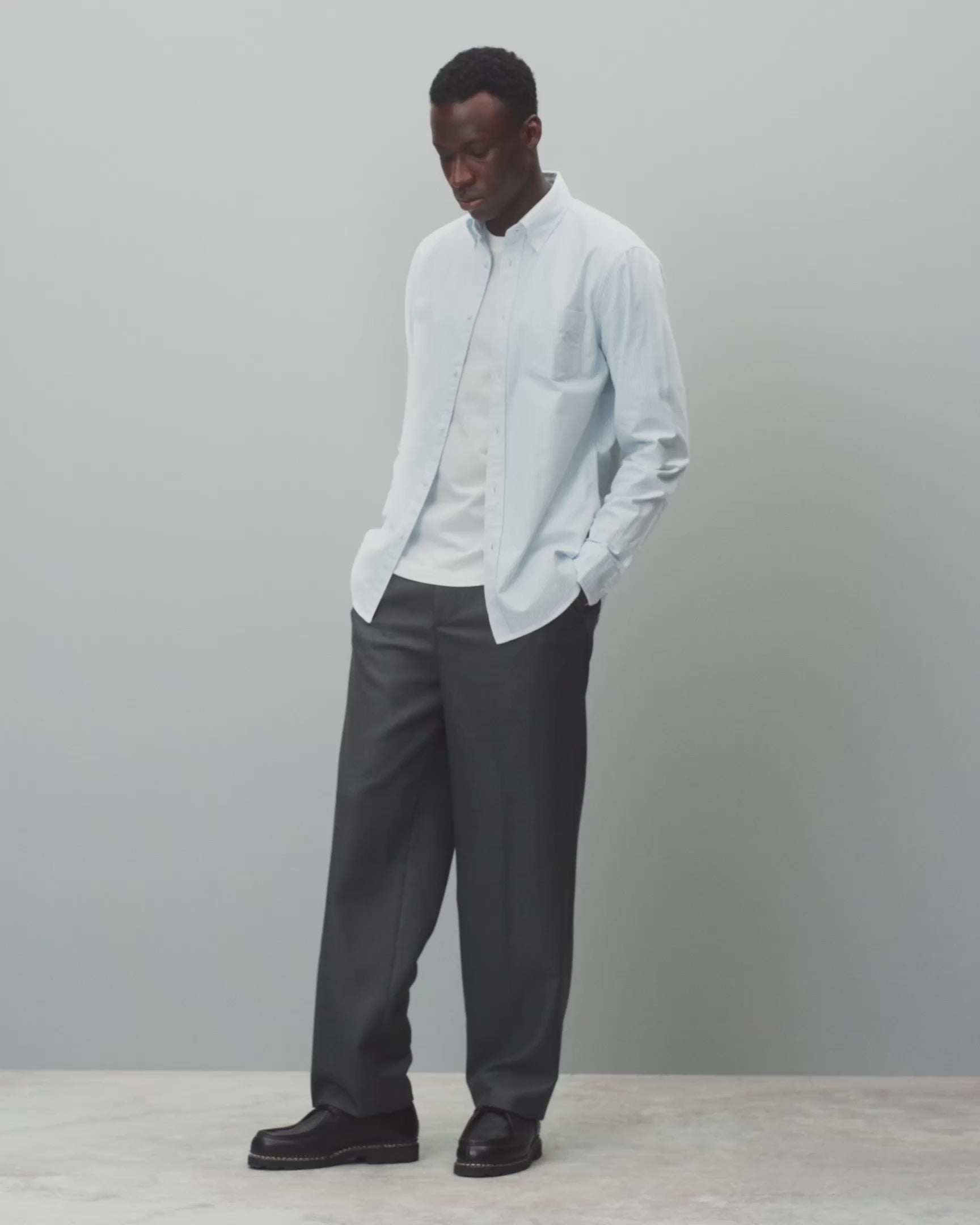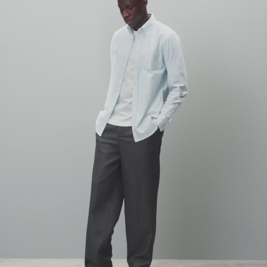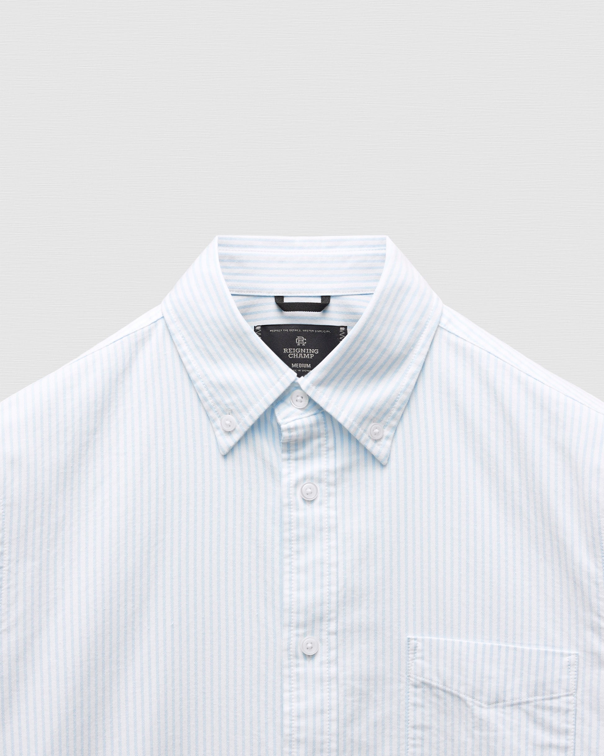 This button down shirt is crafted from classic cotton oxford in a versatile, year-round weight. Designed in a standard fit to complement all body types, with side gussets for a subtly tailored shape. Finished with faux shell buttons, a chest pocket, curved hem, and tonal monogram embroidery at the left cuff placket.