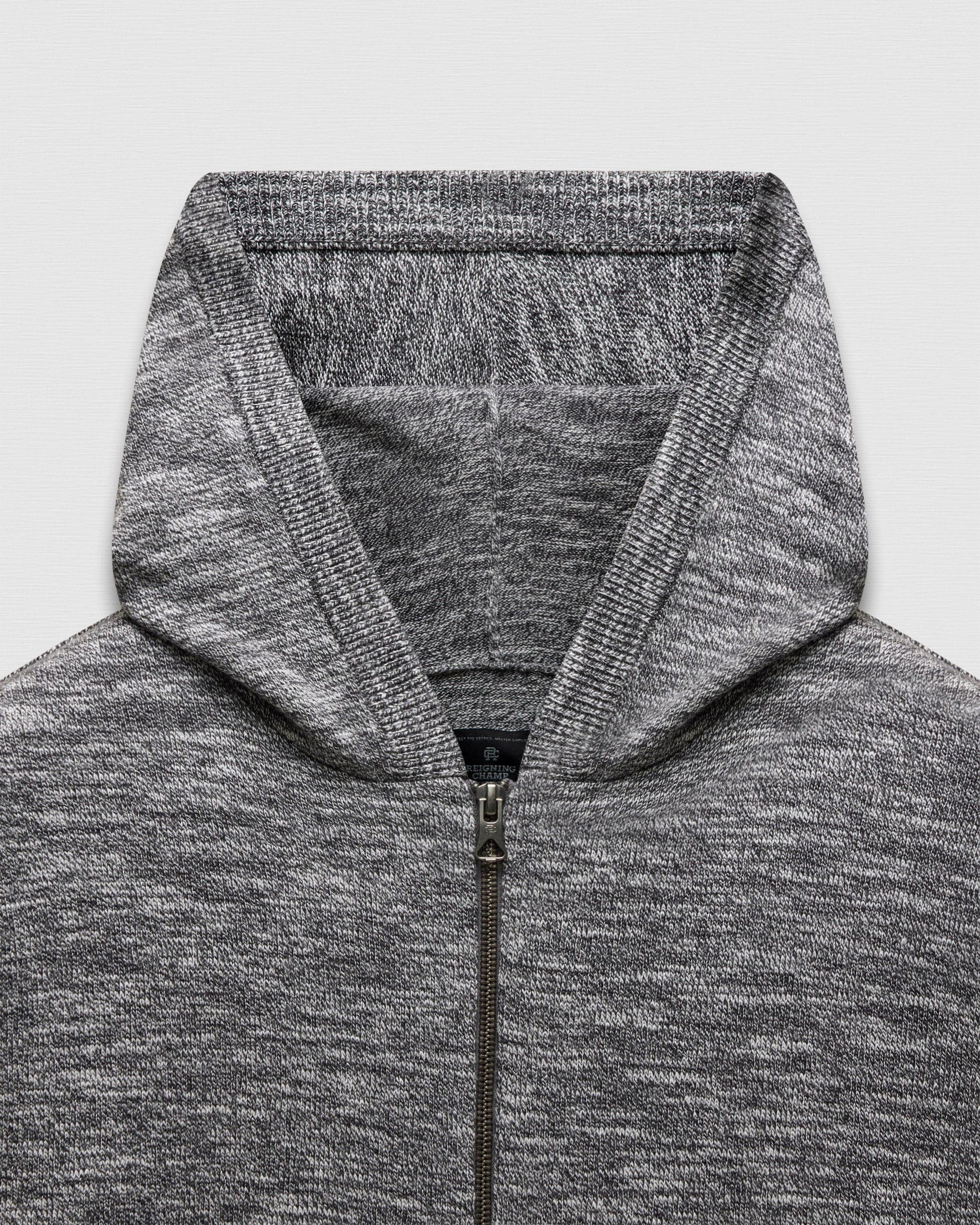 This seasonal zip hoodie is crafted from a midweight cotton slub that's breathable and combed for a soft feel. Featuring a standard fit, with fully fashioned seams. Designed with a darted hood, semi-raglan sleeves, a heavy gauge two-way YKK zipper, front pockets, and lycra-blended cuffs and hem for added durability.