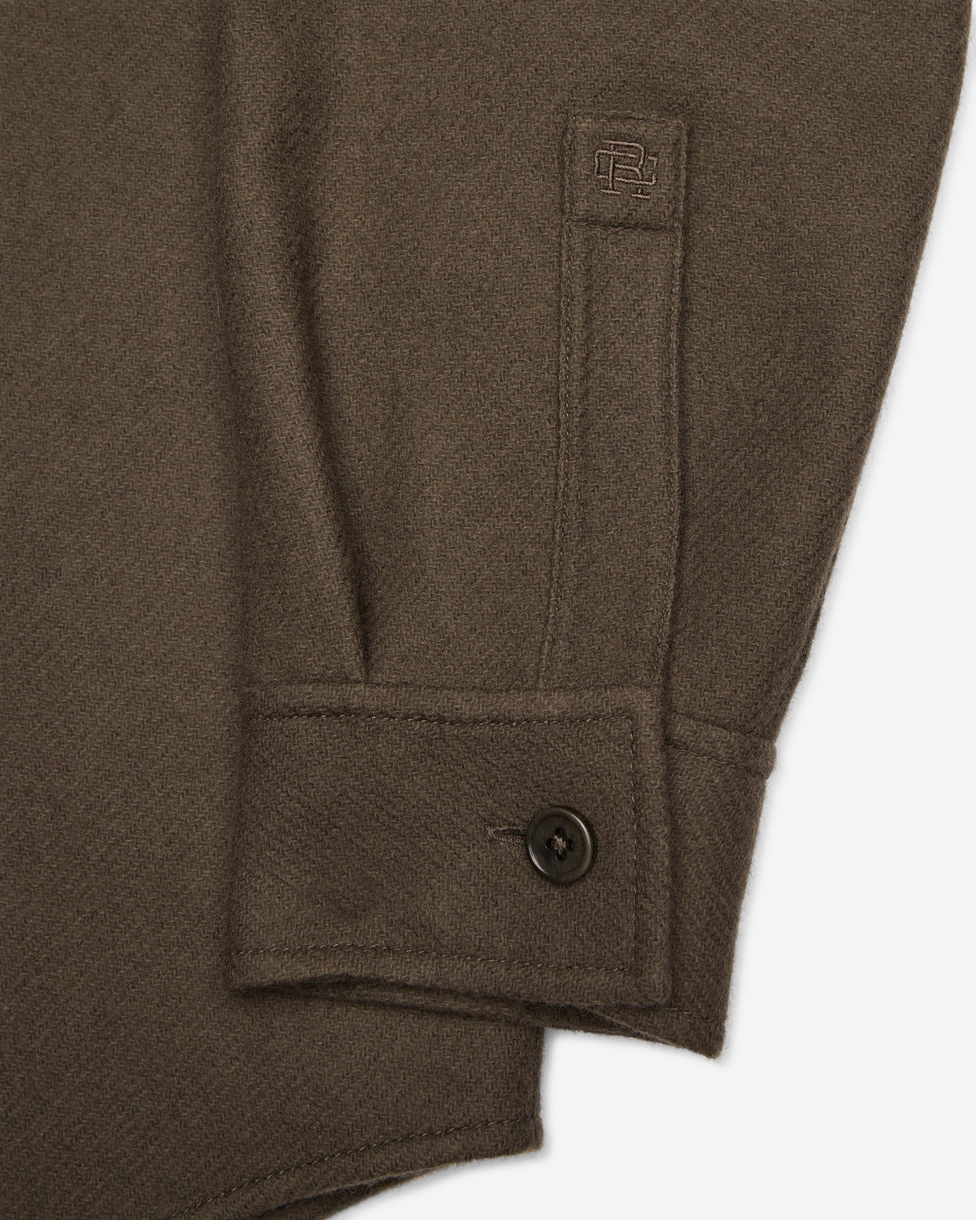 - Monogram embroidery at left sleeve
