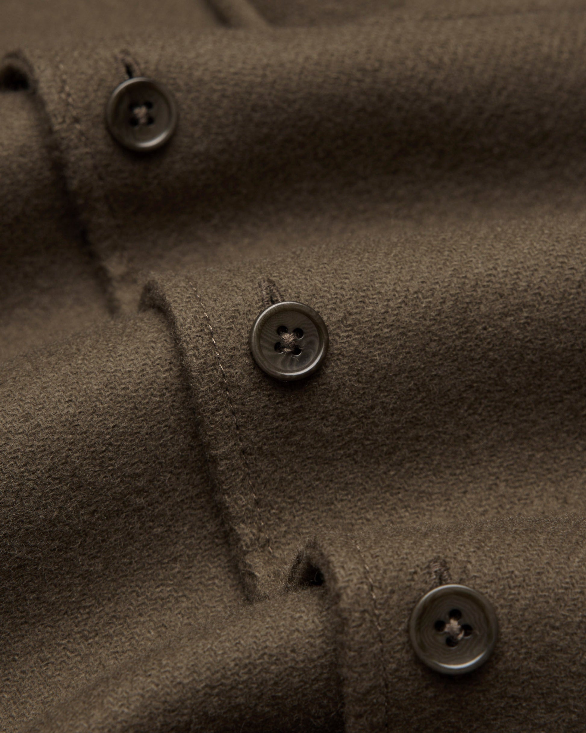 Versatile for the cooler months, this overshirt is crafted from Italian virgin wool with a brushed, felted finish for added warmth. Cut in a standard fit for easy layering. Designed with a pointed collar, buttoned chest pockets, corozo buttons, a curved hem, and tonal monogram embroidery at the left cuff placket.