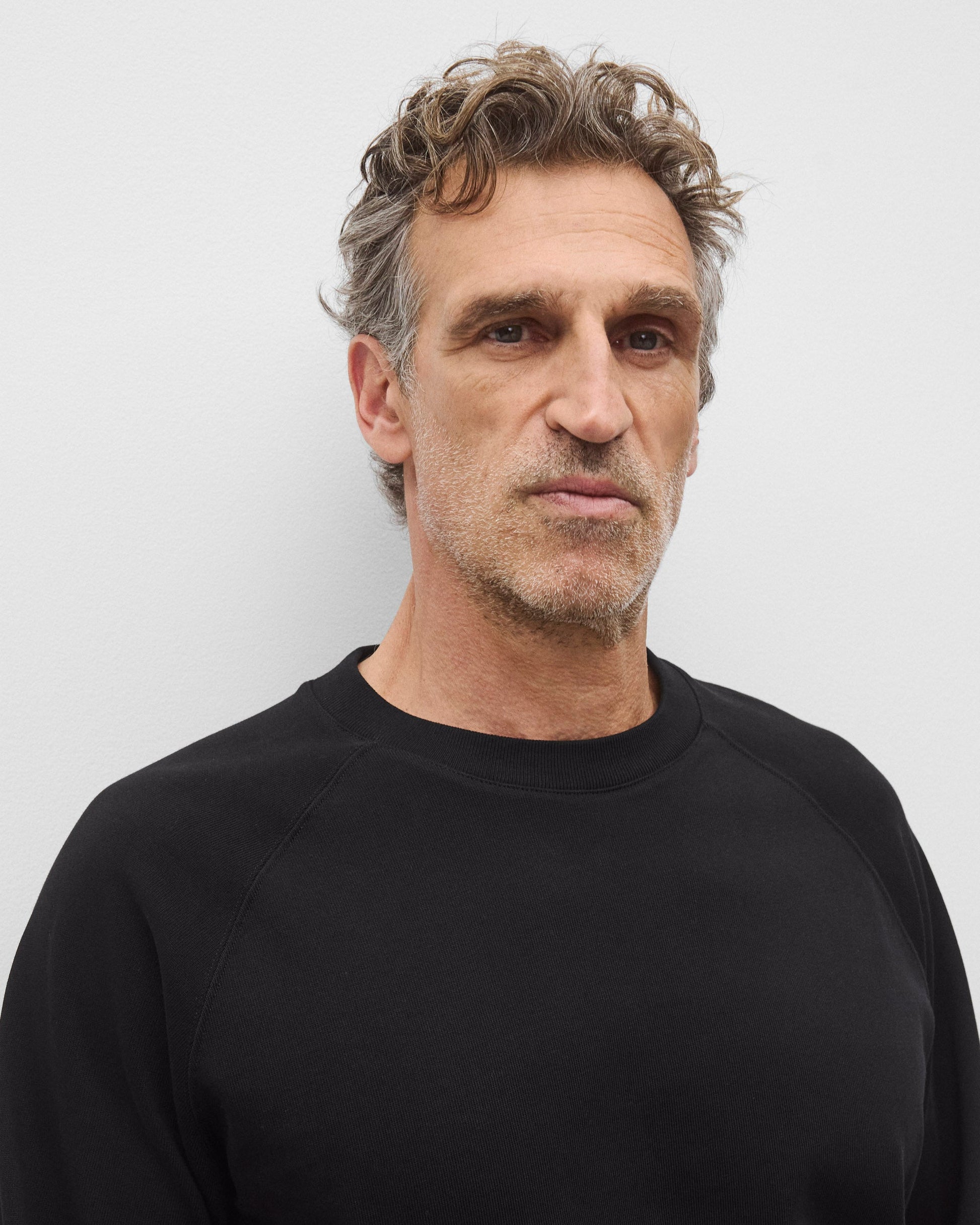 As an alternative to our traditional loopback terry, this raglan crewneck is made from heavyweight jersey—the same fabric as our heaviest T‑shirts—for a substantial feel without the bulk. Smooth on the inside and out, with a finer drape ideal for spring and summer wear.