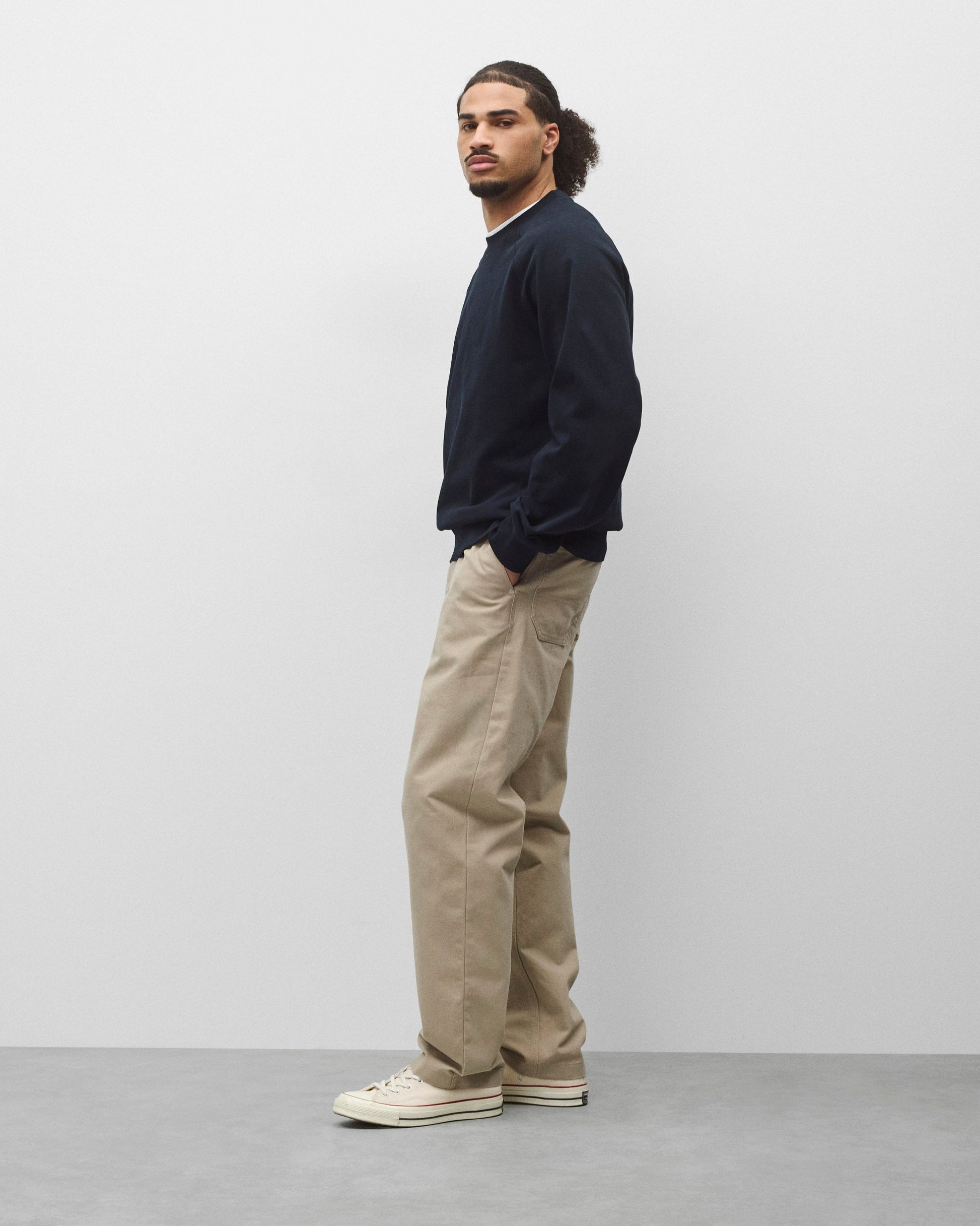 This crewneck is crafted from our heaviest cotton jersey for a substantial feel without the bulk. Featuring a standard fit with balanced proportions. Designed with raglan sleeves, 1x1 rib trim, and signature flatlock seams for comfort and durability.