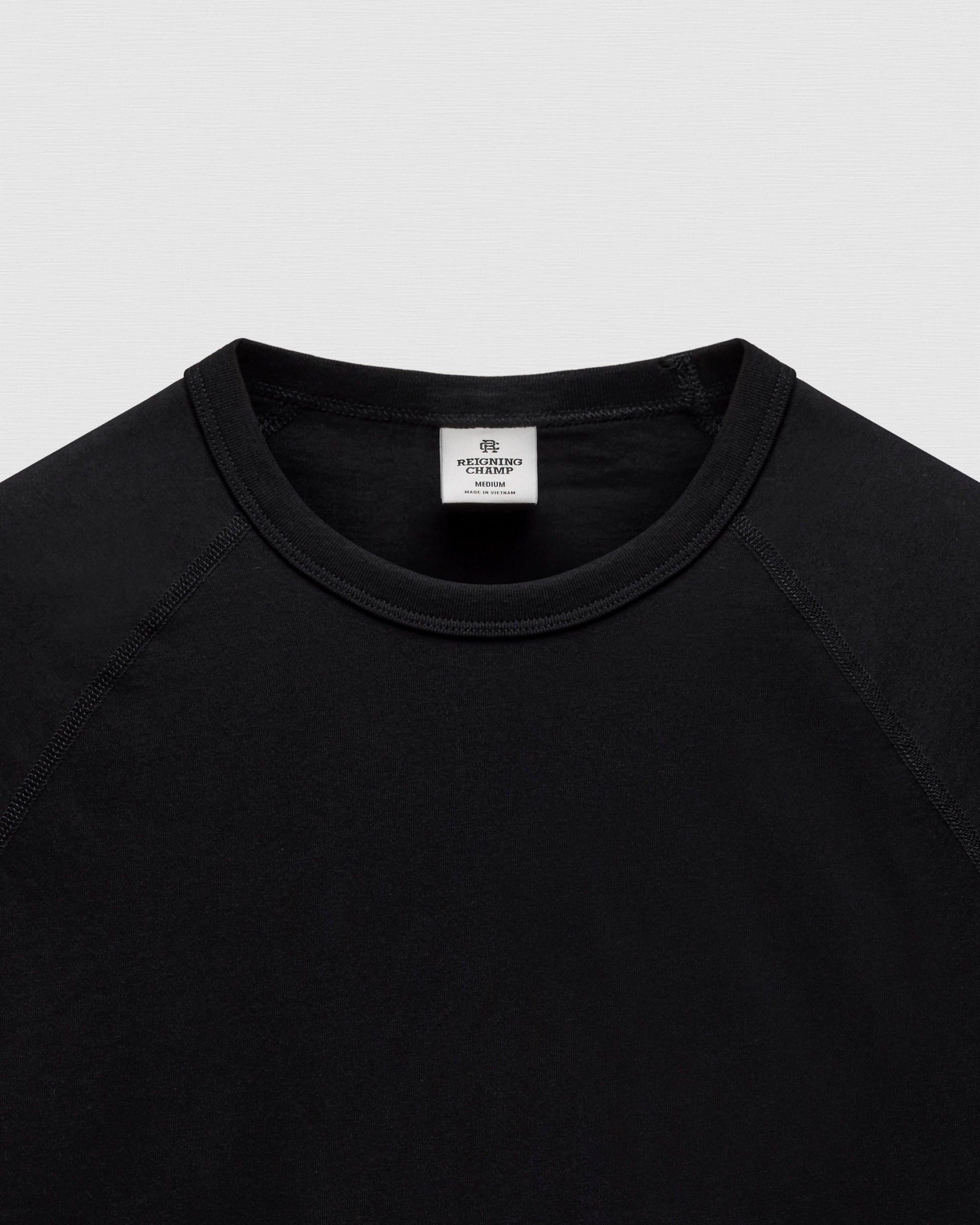 This raglan T-shirt is crafted from premium cotton with a versatile year-round weight. Cut in a standard athletic fit with balanced proportions. Designed with a durable rib-bound collar, raglan sleeves, a scooped hem, and signature flatlock seams.