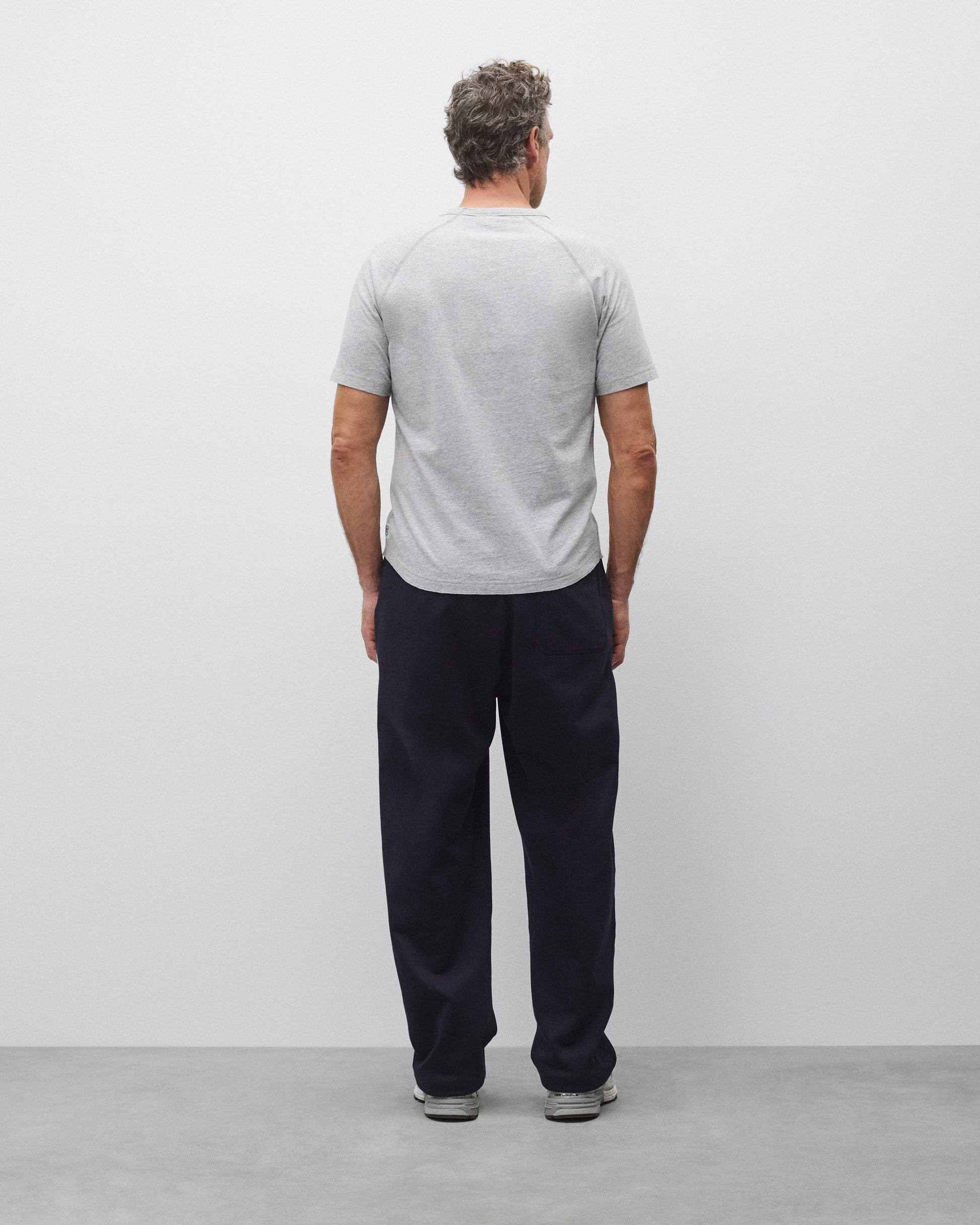 This raglan T-shirt is crafted from premium cotton with a versatile year-round weight. Cut in a standard athletic fit with balanced proportions. Designed with a durable rib-bound collar, raglan sleeves, a scooped hem, and signature flatlock seams.