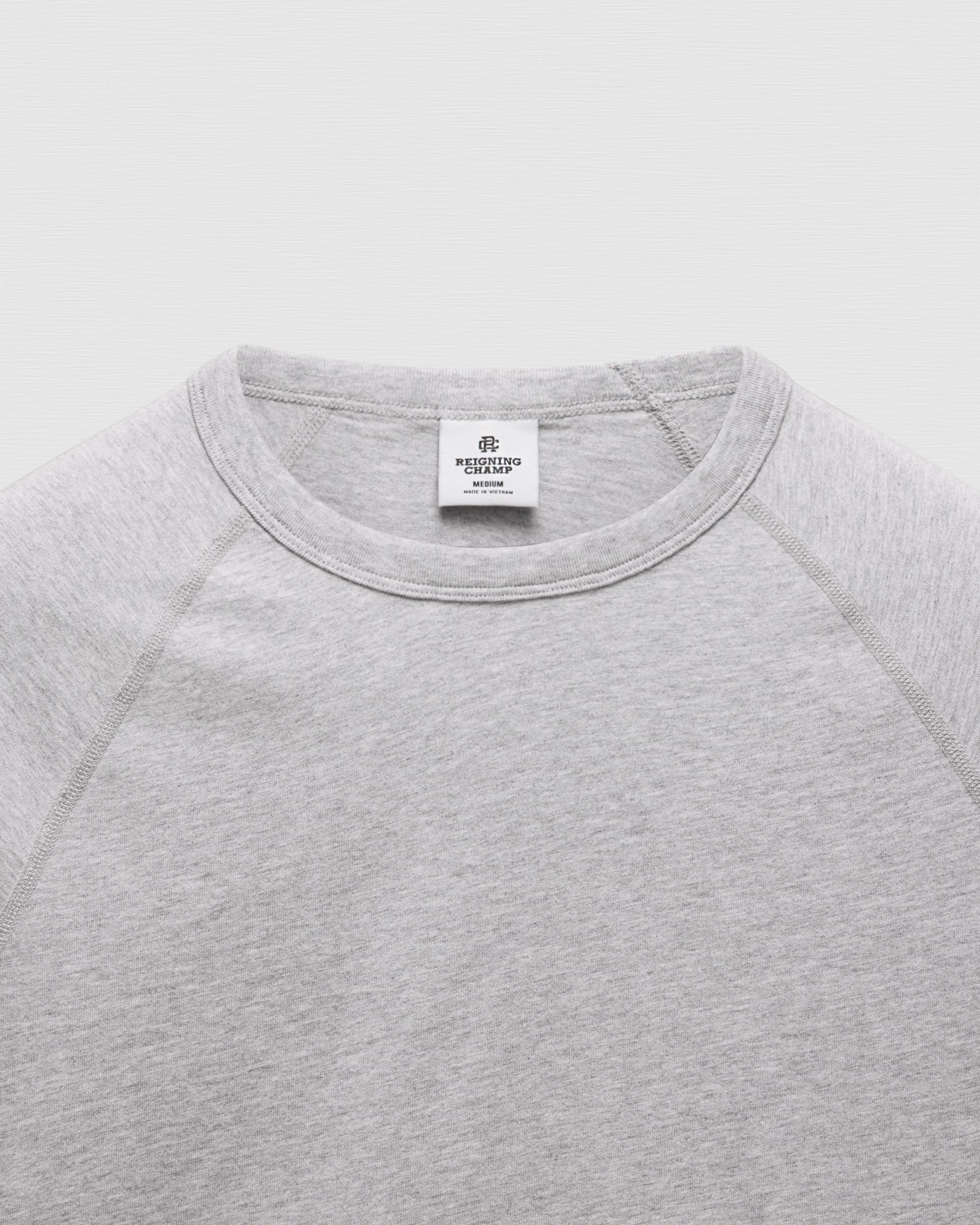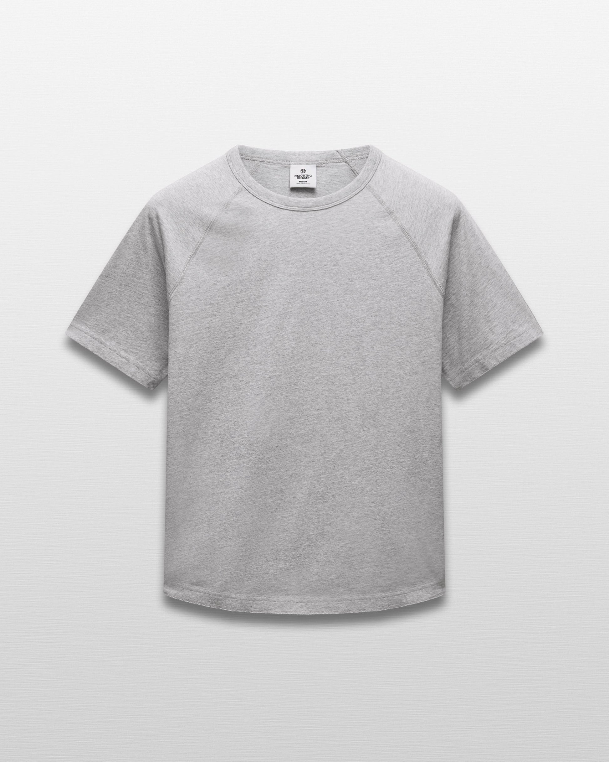 This raglan T-shirt is crafted from premium cotton with a versatile year-round weight. Cut in a standard athletic fit with balanced proportions. Designed with a durable rib-bound collar, raglan sleeves, a scooped hem, and signature flatlock seams.