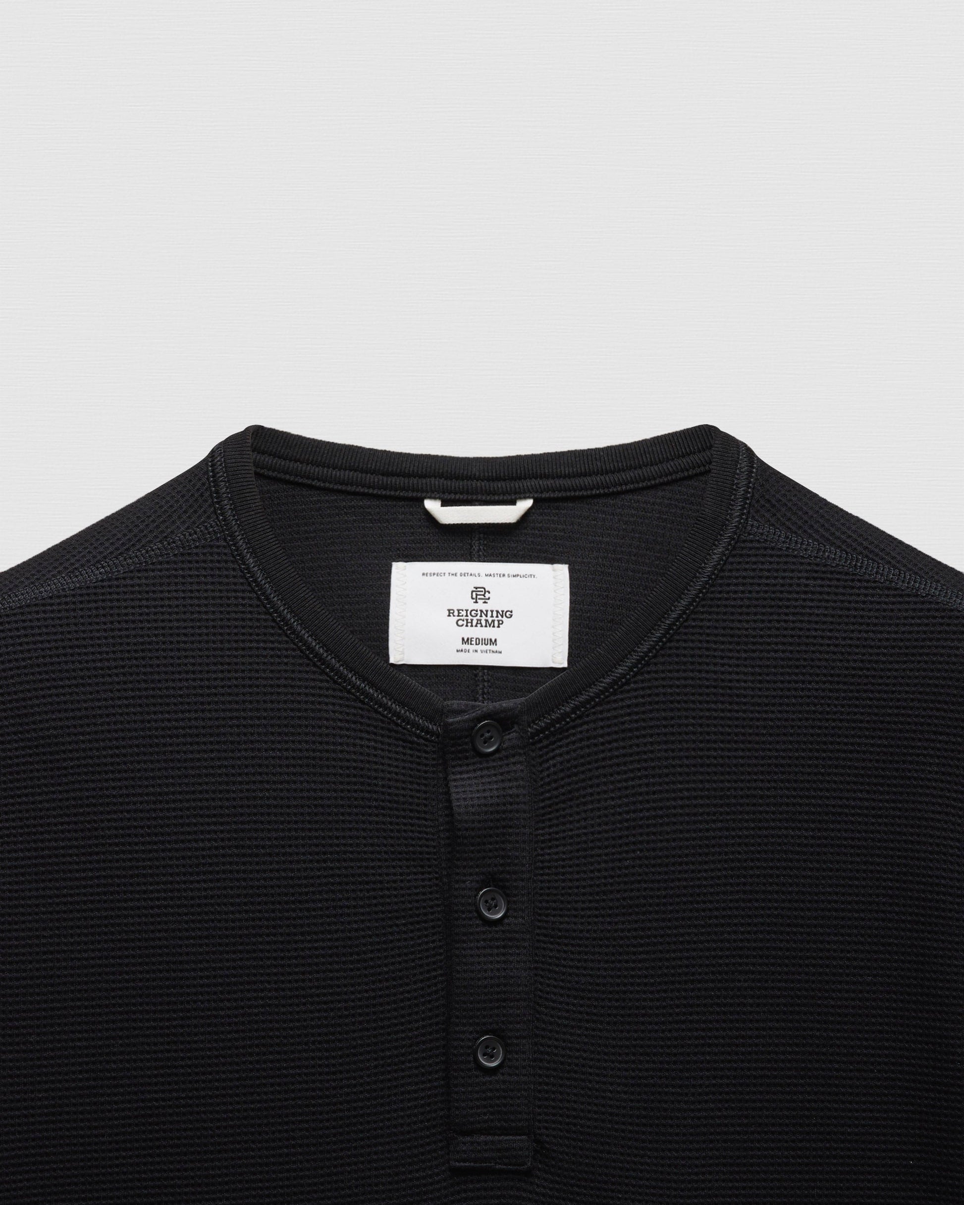 This long sleeve henley is crafted from waffle-knit fabric that's combed for comfort and made with TENCEL™ Modal. Featuring a standard fit to complement all body types. Designed with a tonal 3-button placket, set-in sleeves, durable rib cuffs, and a flat hem.