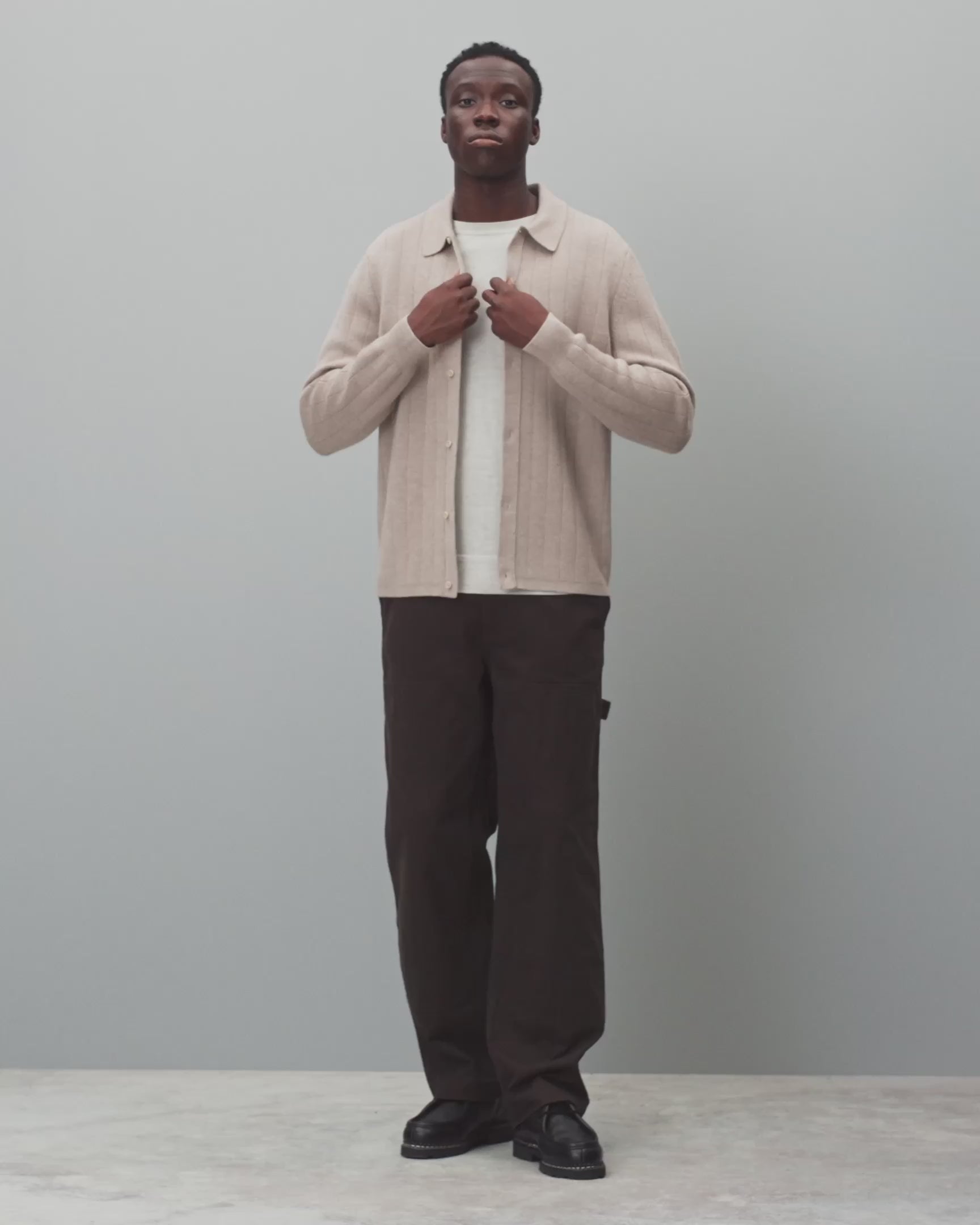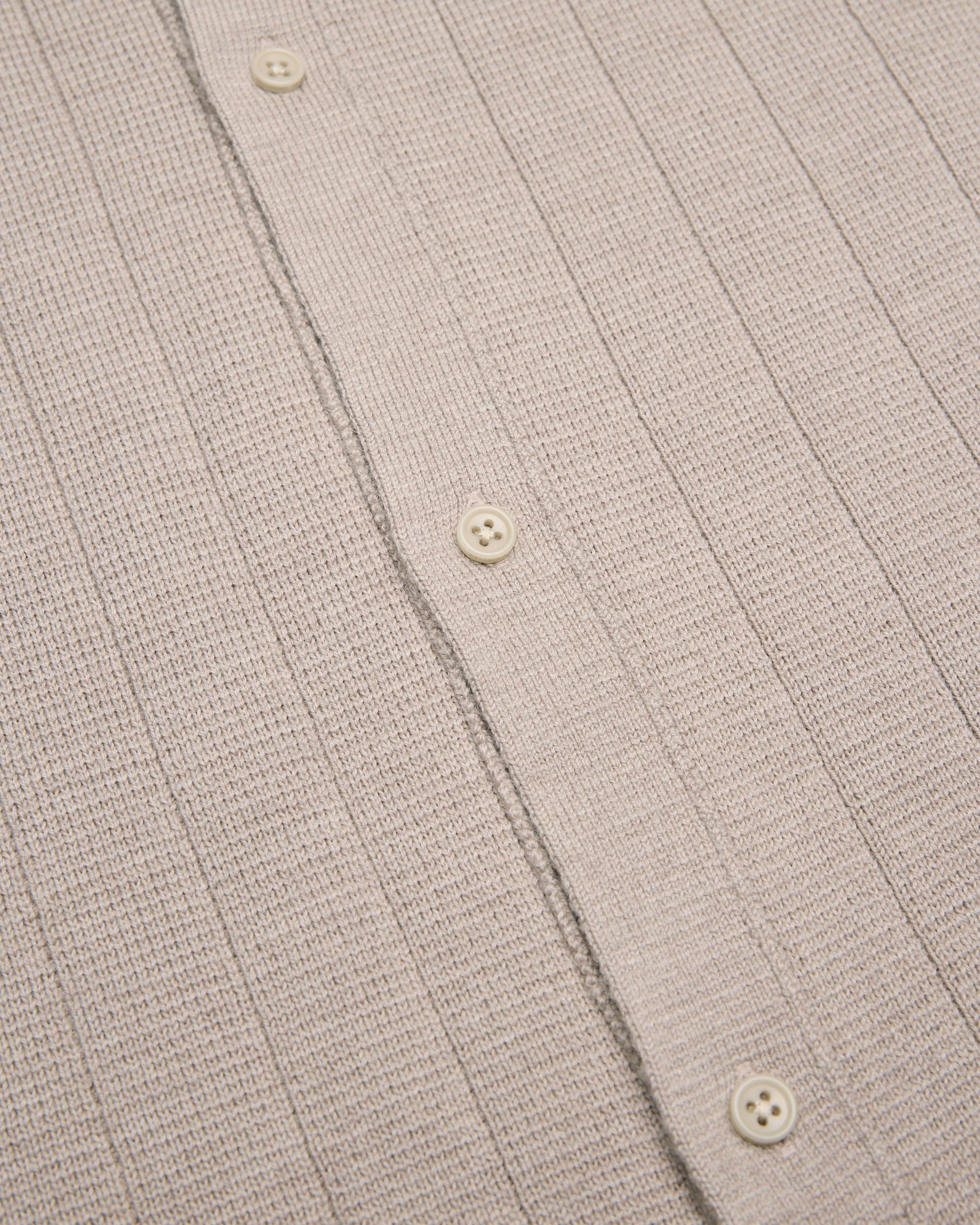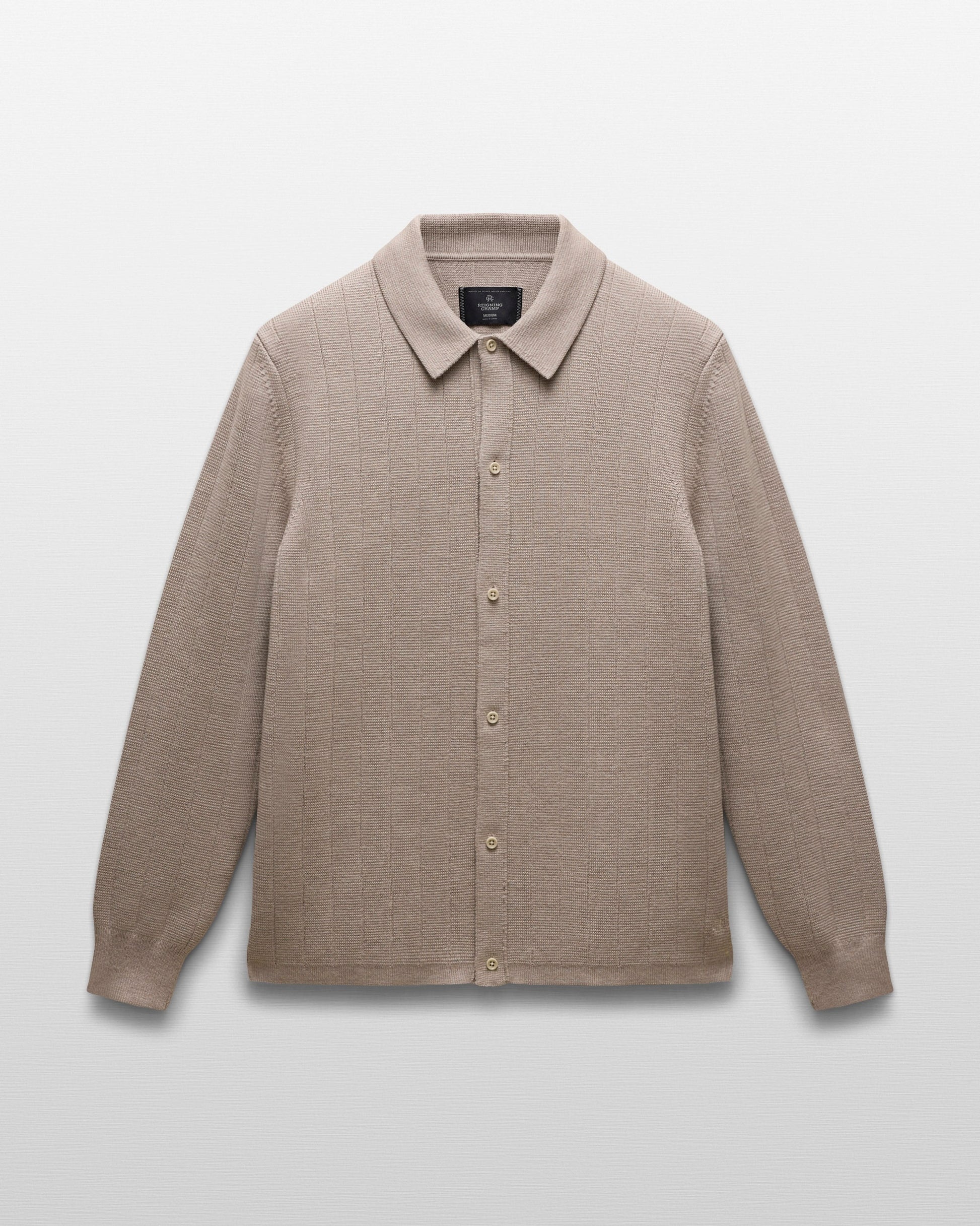 This collared knit shirt is crafted from extrafine merino wool with drop needle detailing. Cut in a standard fit, with fully fashioned seams and french shoulder details. Designed with a milano stitch collar and placket, corozo logo buttons, and premium knit rib.
