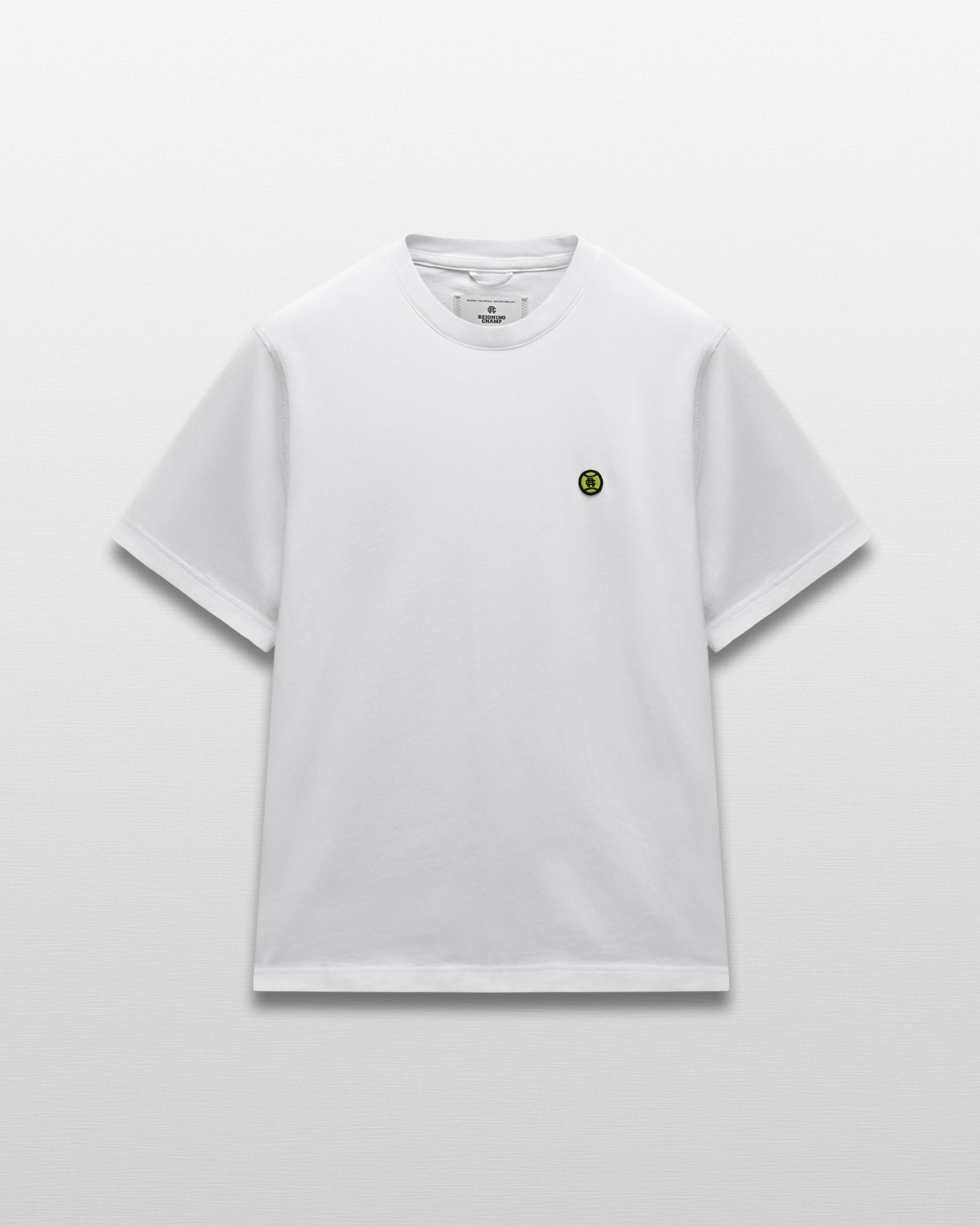 Our OG-fit tee in premium midweight cotton jersey, featuring court-inspired logo embroidery. Designed with dropped shoulders, a straight silhouette, and signature flatlock seams for durability and comfort.
