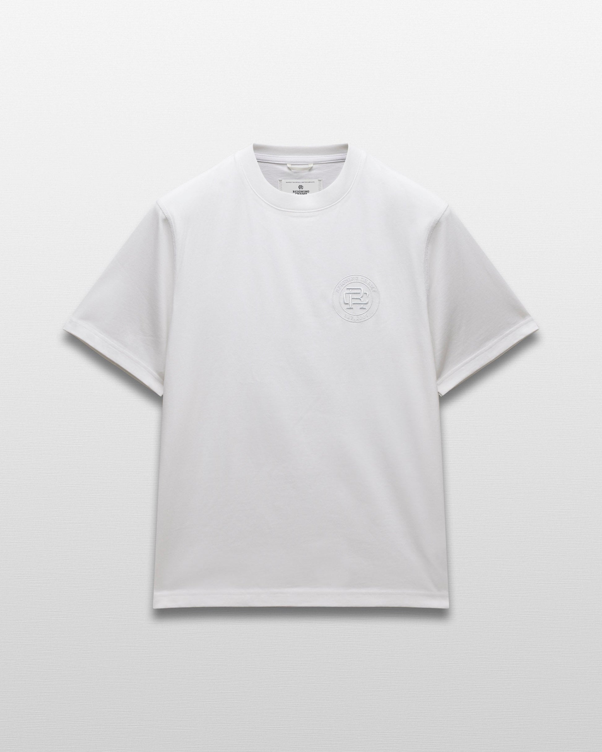 This short sleeve T-shirt is made from premium Midweight Jersey, featuring a tonal satin stitch version of our iconic crest logo embroidered on the left chest. Designed in the OG standard fit, with slightly dropped shoulders and a straight silhouette through the torso. Details include a rib collar, set-in sleeves, and signature flatlock construction.