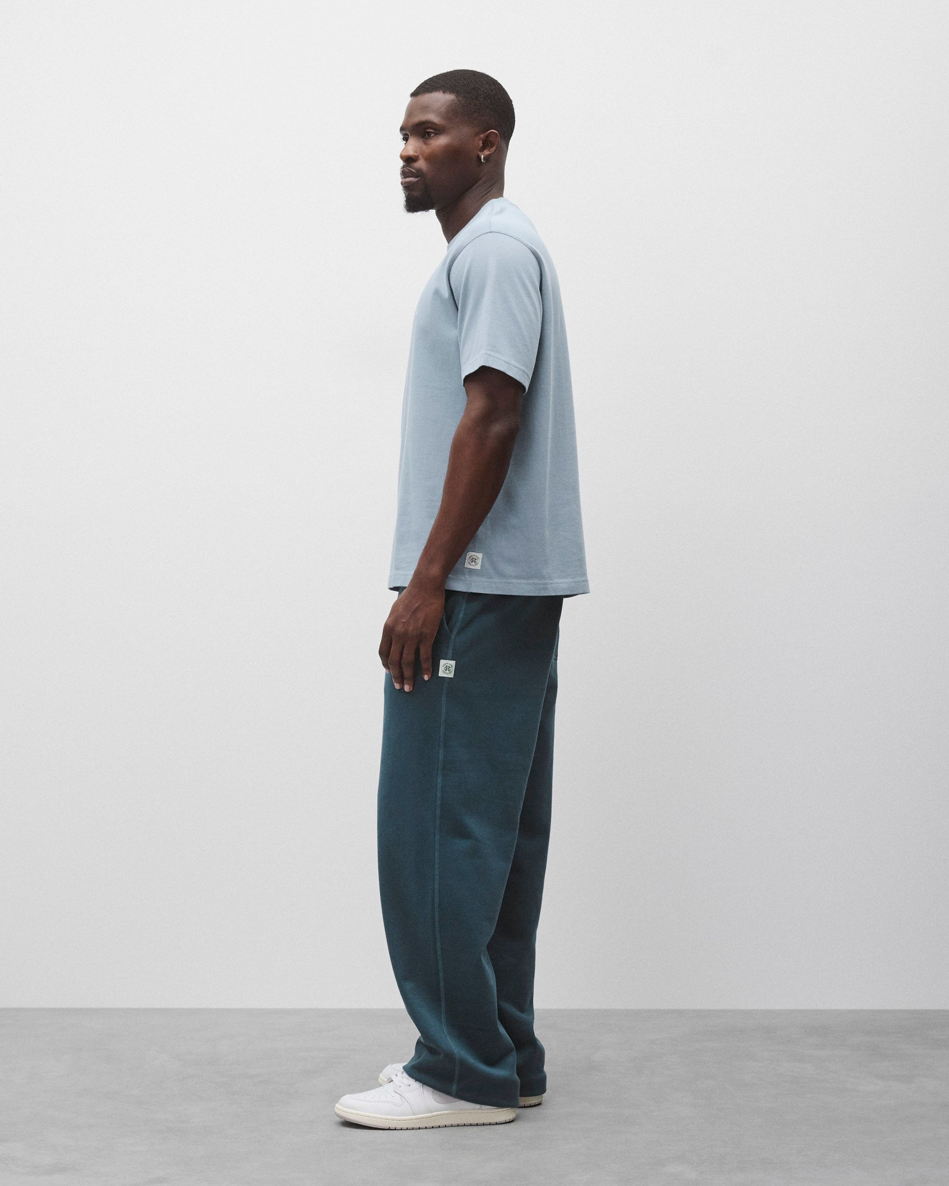 This short sleeve T-shirt is made from premium Midweight Jersey, featuring our embroidered monogram logo on the chest. Designed in the OG standard fit, with slightly dropped shoulders and a straight silhouette through the torso. Details include a rib collar, set-in sleeves, and signature flatlock construction.