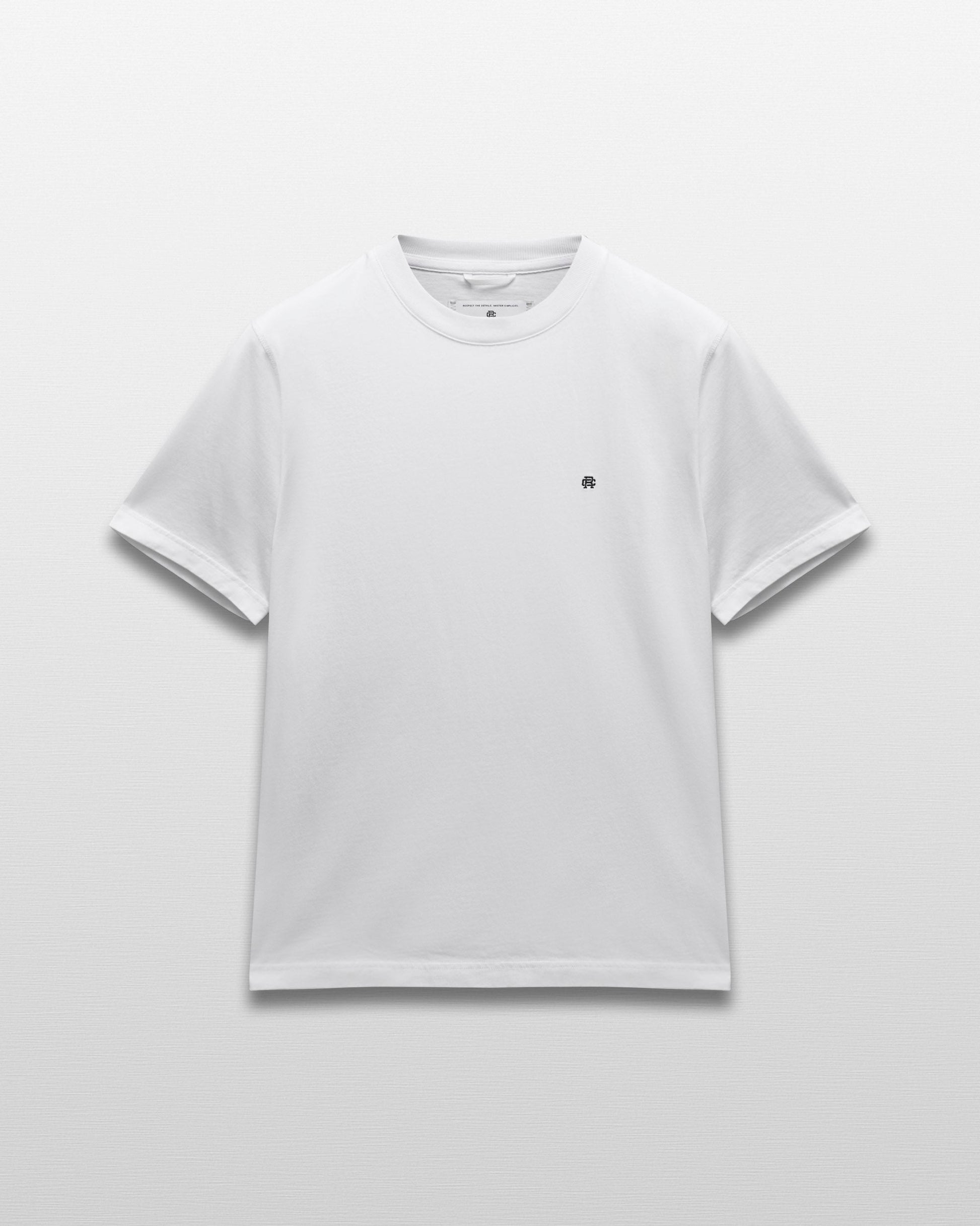 This short sleeve T-shirt is made from premium Midweight Jersey, featuring our embroidered monogram logo on the chest. Designed in the OG standard fit, with slightly dropped shoulders and a straight silhouette through the torso. Details include a rib collar, set-in sleeves, and signature flatlock construction.