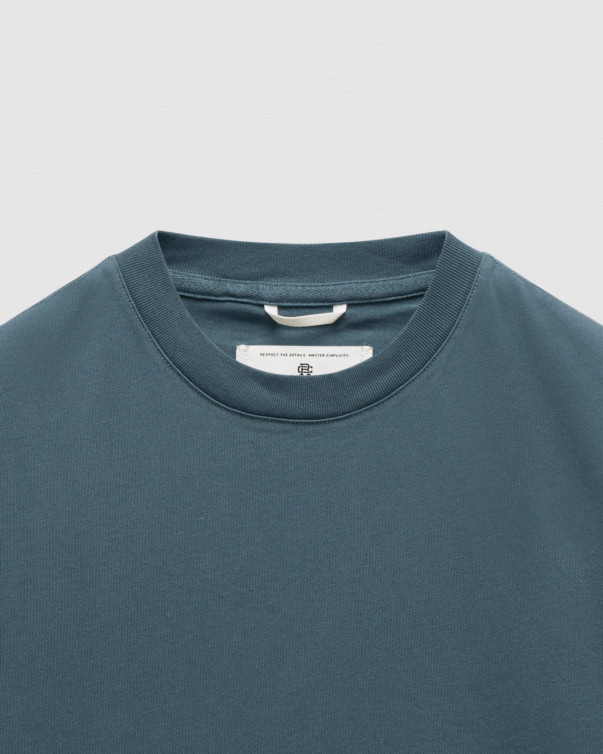 This midweight short sleeve T-shirt is made from premium cotton, balancing substantial structure with a soft hand. Our OG fit is a silhouette reintroduced from a past season, featuring slightly dropped shoulders and a straight fit through the torso. Designed with a wide rib collar, set-in sleeves, and signature flatlock construction.