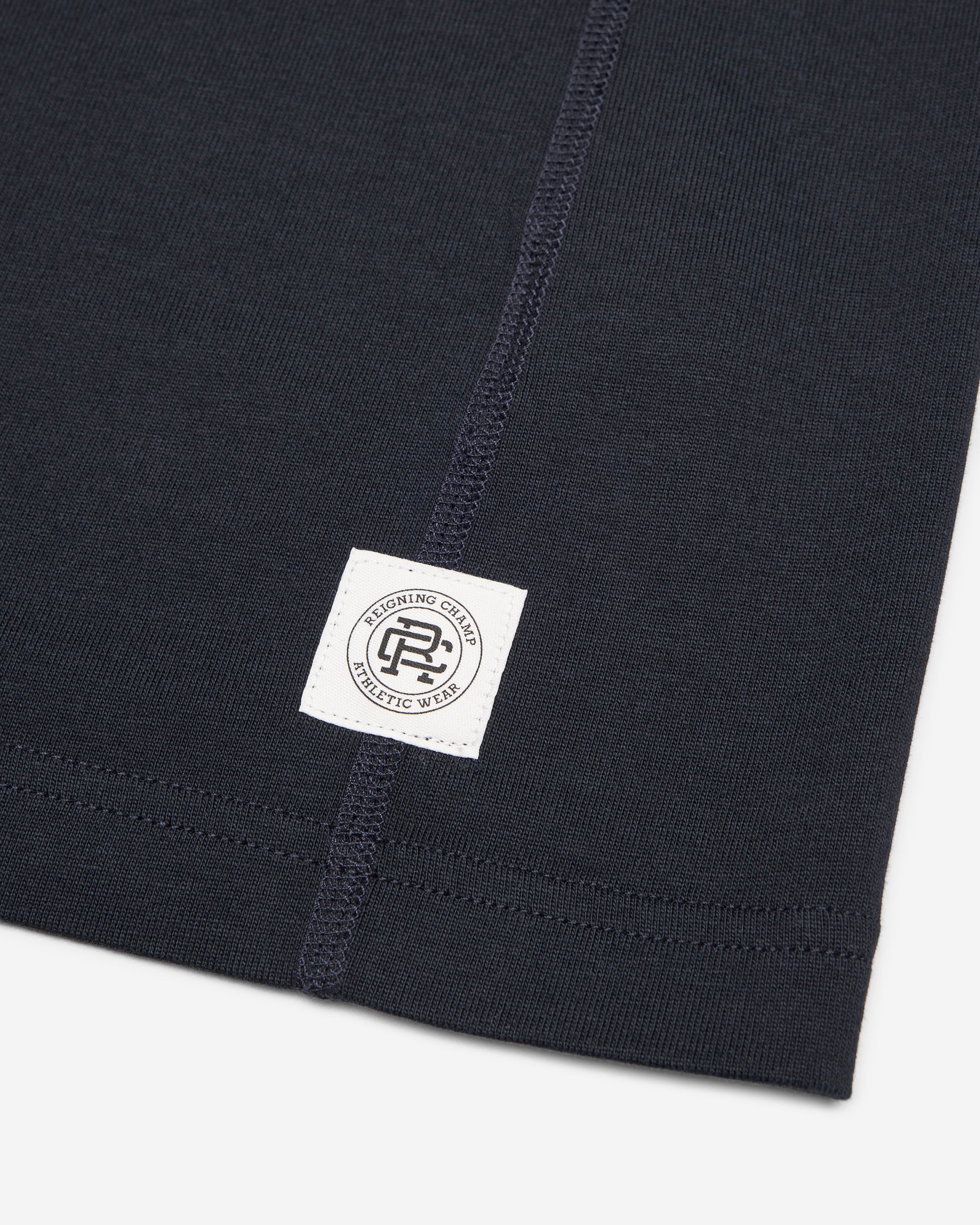 This midweight short sleeve T-shirt is made from premium cotton, balancing substantial structure with a soft hand. Our OG fit is a silhouette reintroduced from a past season, featuring slightly dropped shoulders and a straight fit through the torso. Designed with a wide rib collar, set-in sleeves, and signature flatlock construction.