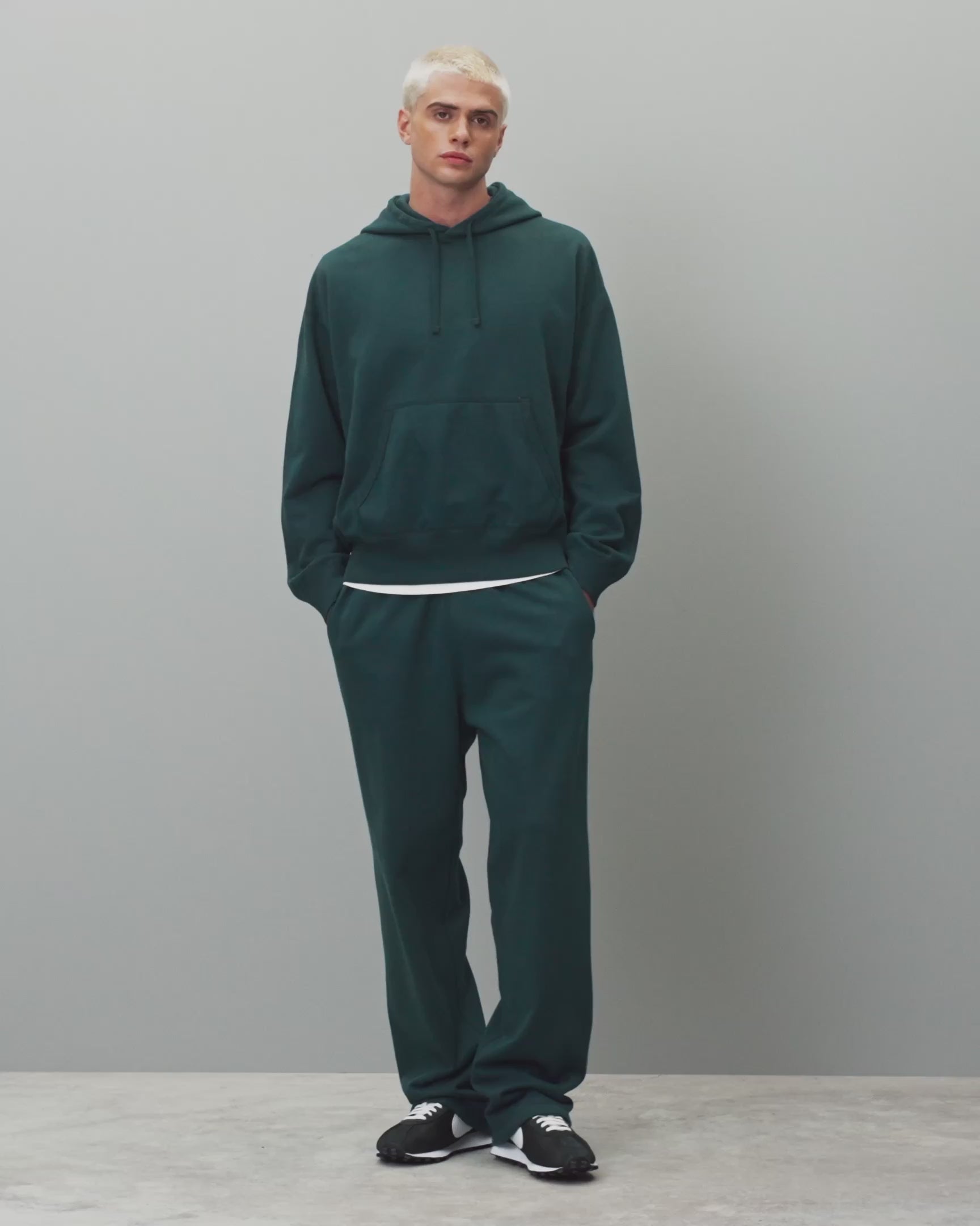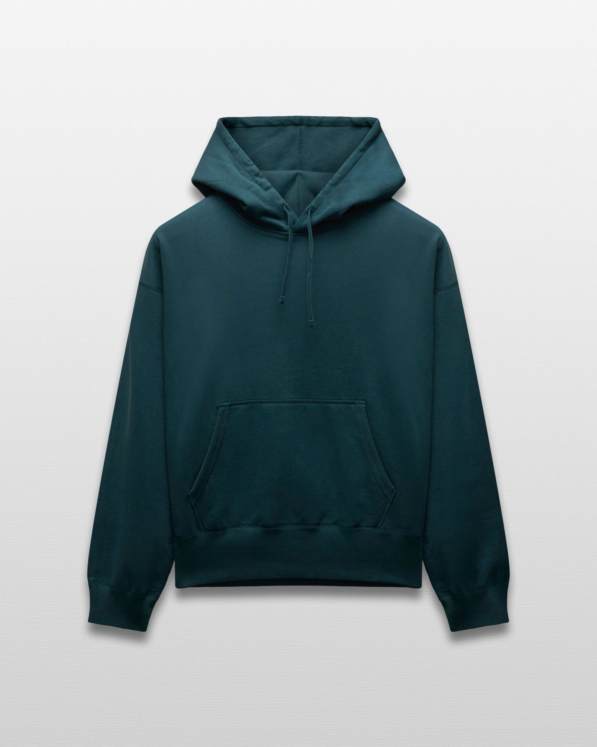 Our relaxed-fit pullover hoodie is made from premium Midweight Terry for an ideal balance of comfort, structure and drape. Featuring drop shoulders, full-cut sleeves and torso, and a waist-length hem. Designed with a dual-layer hood, a rib-bound front pocket, and premium rib.