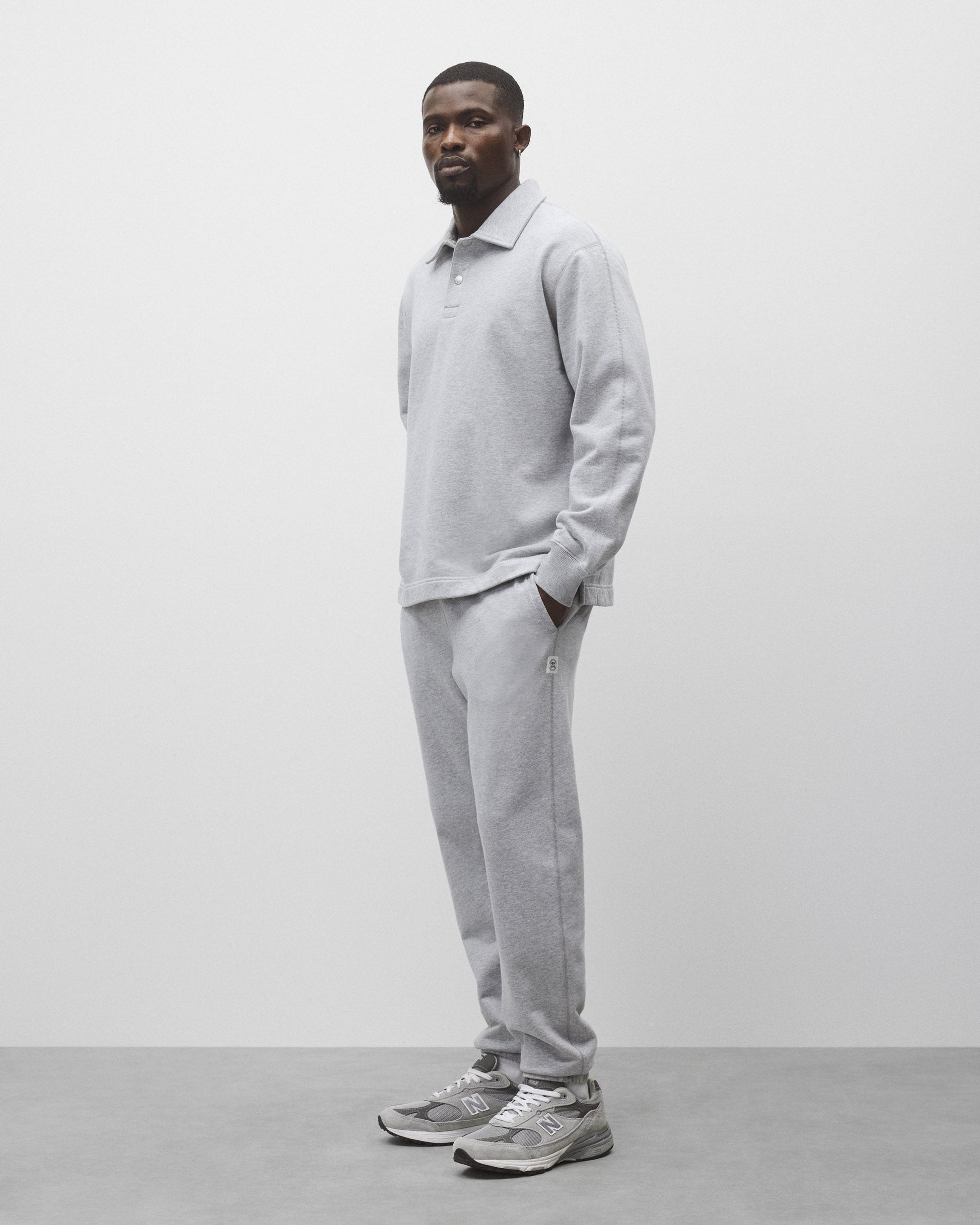 This collared rugby sweatshirt is made from premium Midweight Terry for an ideal balance of comfort and structure. Designed with metal logo snaps, a herringbone tape placket, semi-raglan sleeves, a side slit hem, and premium rib.