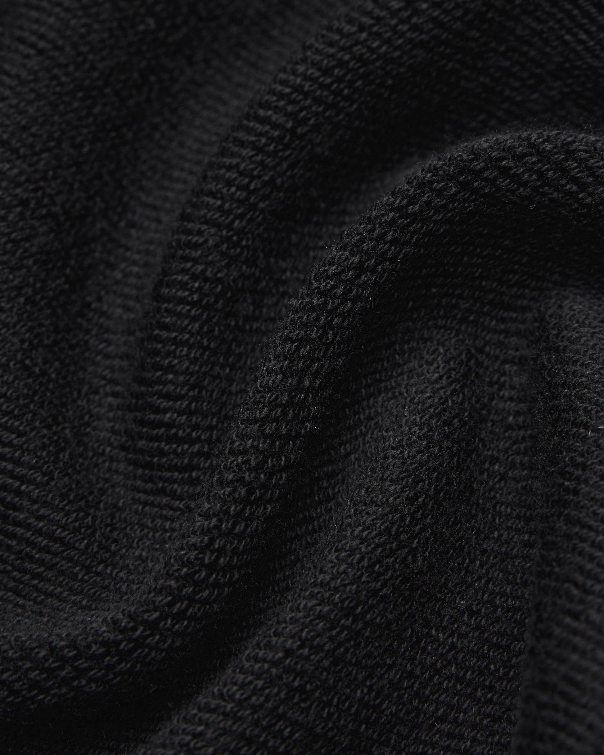 100% French Terry cotton that feels substantial but well-balanced, offering natural drape and flexibility for comfortable layering