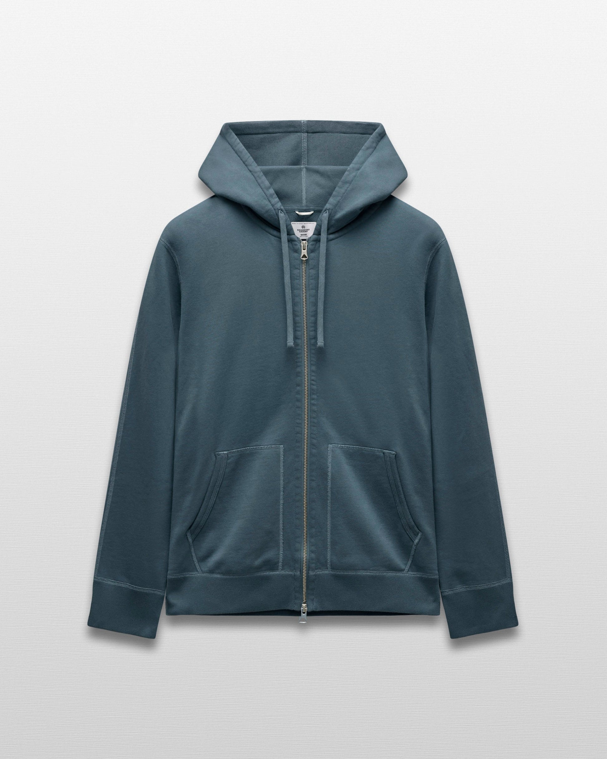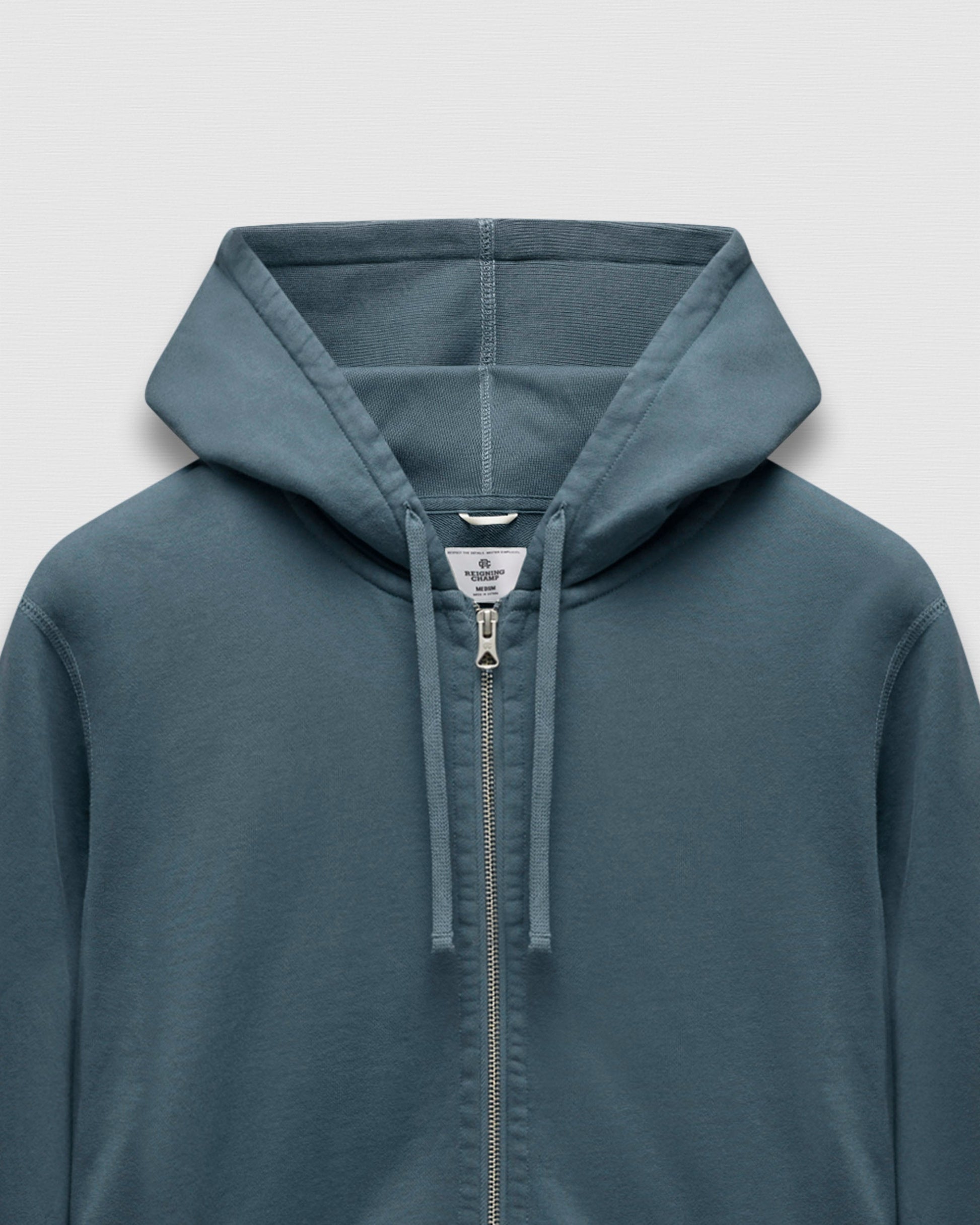Our signature zip hoodie is made from premium Midweight Terry for an ideal balance of comfort and structure. Designed with a trim athletic fit, a dual-layer hood, semi-raglan sleeves, a heavy gauge two-way YKK zipper, a rib-bound front pocket, premium rib, and signature flatlock construction.