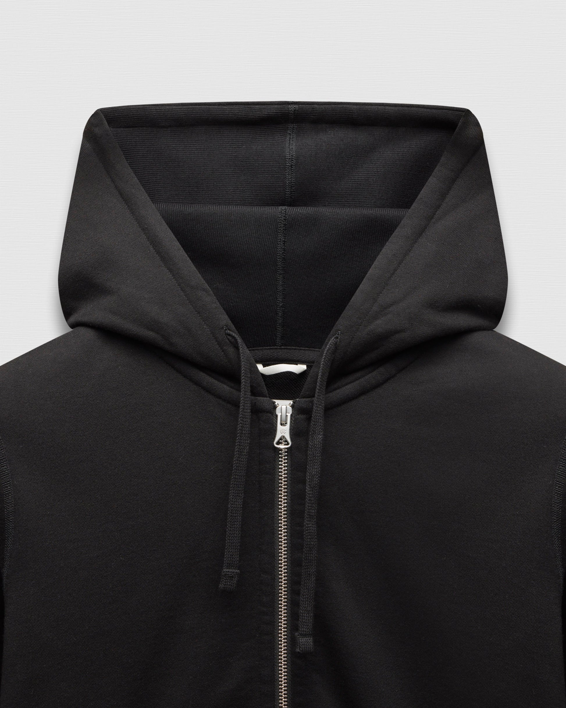 Our signature zip hoodie is made from premium Midweight Terry for an ideal balance of comfort and structure. Designed with a trim athletic fit, a dual-layer hood, semi-raglan sleeves, a heavy gauge two-way YKK zipper, a rib-bound front pocket, premium rib, and signature flatlock construction.
