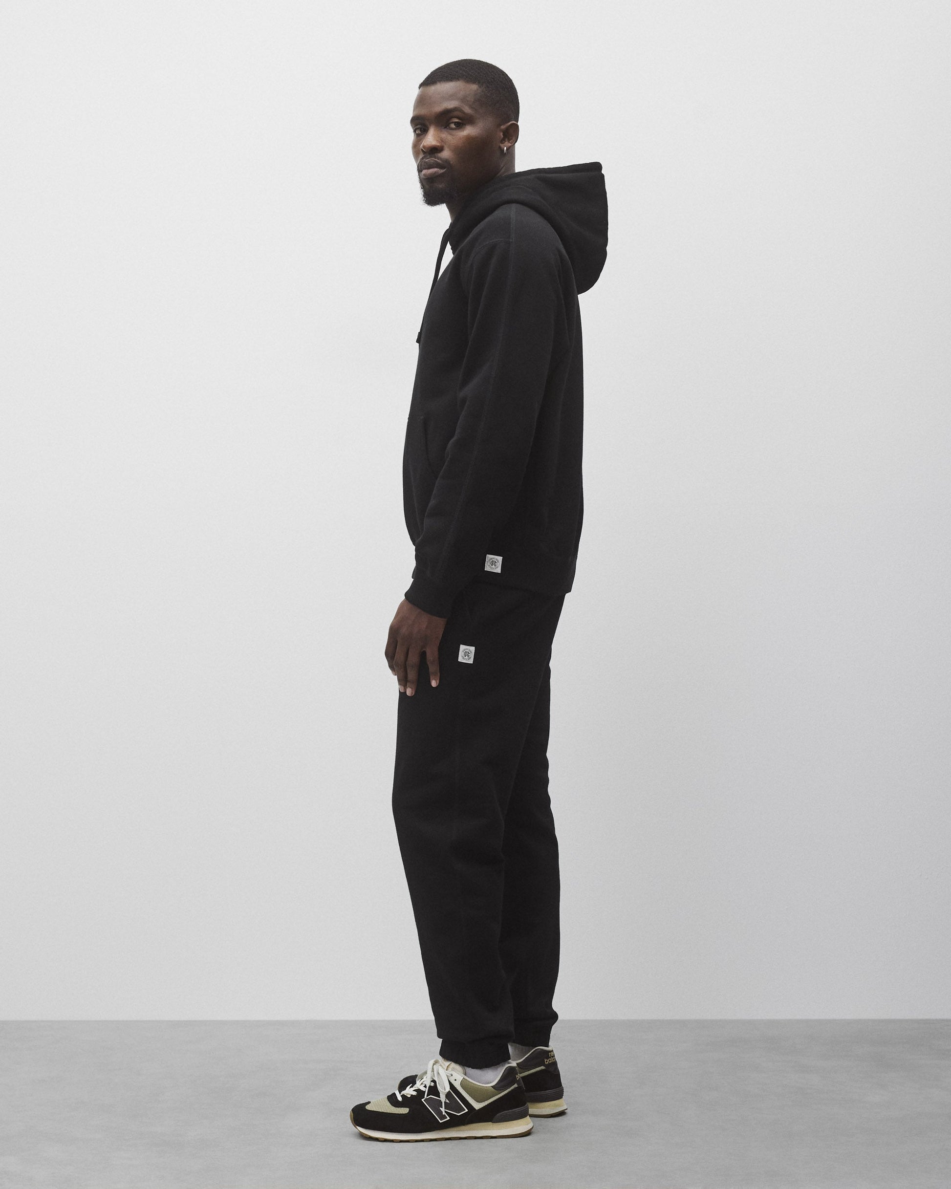 Our standard-fit pullover hoodie falls between our slim and relaxed silhouettes. Featuring slightly relaxed shoulders, with full-cut sleeves and torso. Made from premium Midweight Terry for an ideal balance of comfort and structure. Designed with a dual-layer hood, a front pocket, premium rib, and signature flatlock construction.