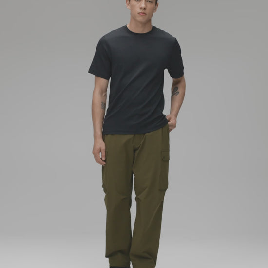 This two-way stretch nylon cargo pant is designed for active pursuits. Featuring an oxford weave reverse, it's abrasion-resistant and treated with a durable water-repellent finish. Engineered for modern utility with a built-in webbing belt, secure zip pockets, metal snap cargo pockets, and shock cord cuffs for adjustability.