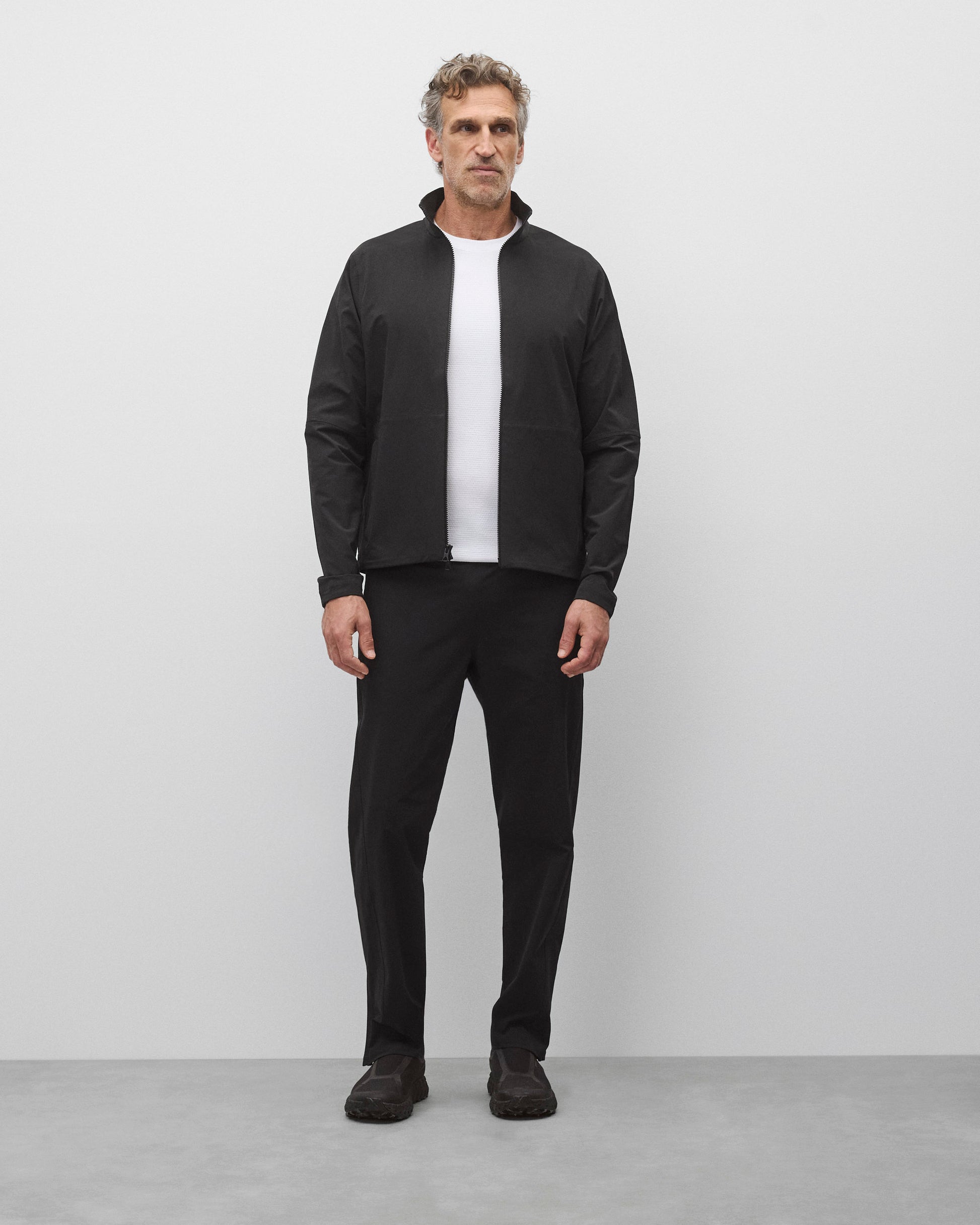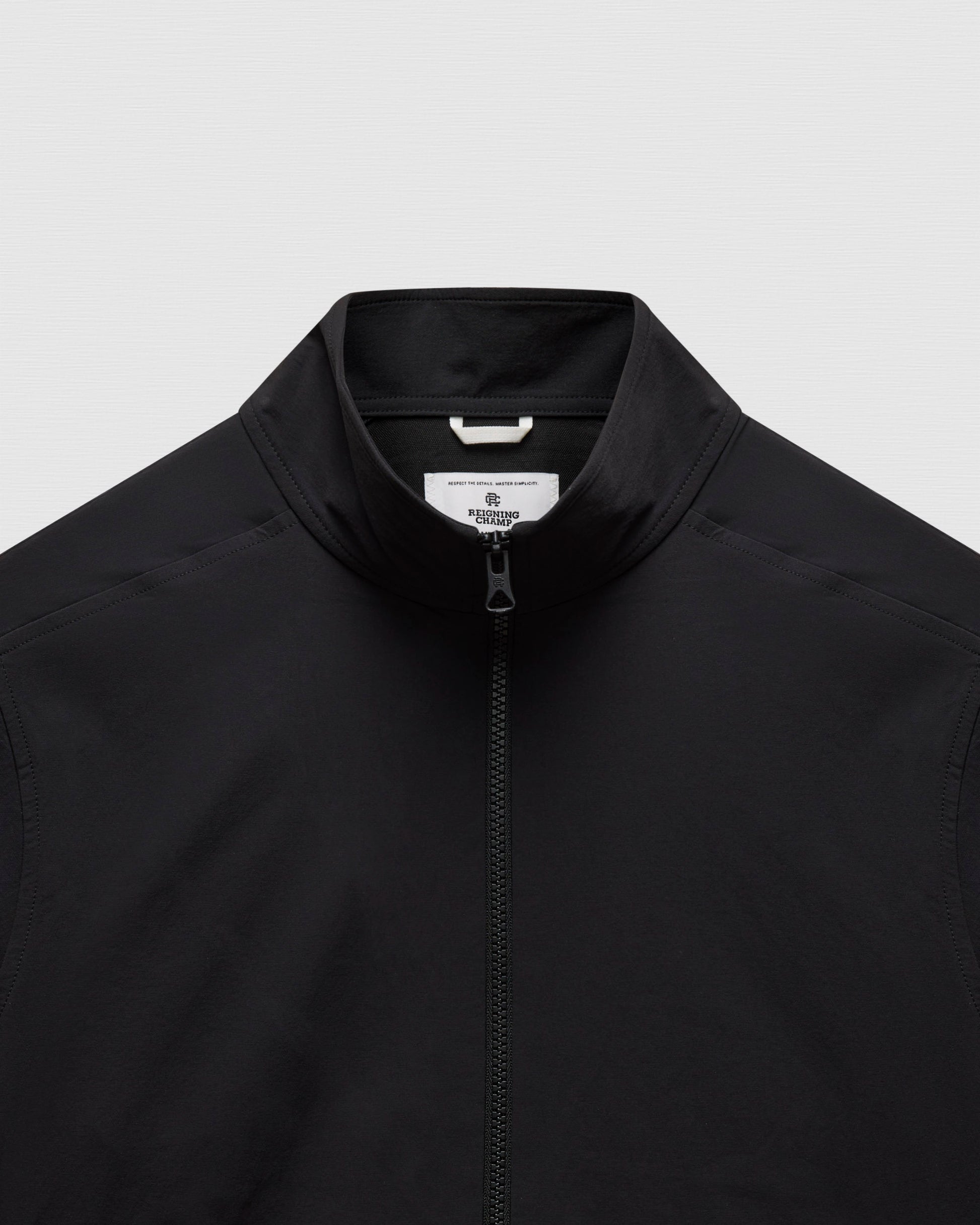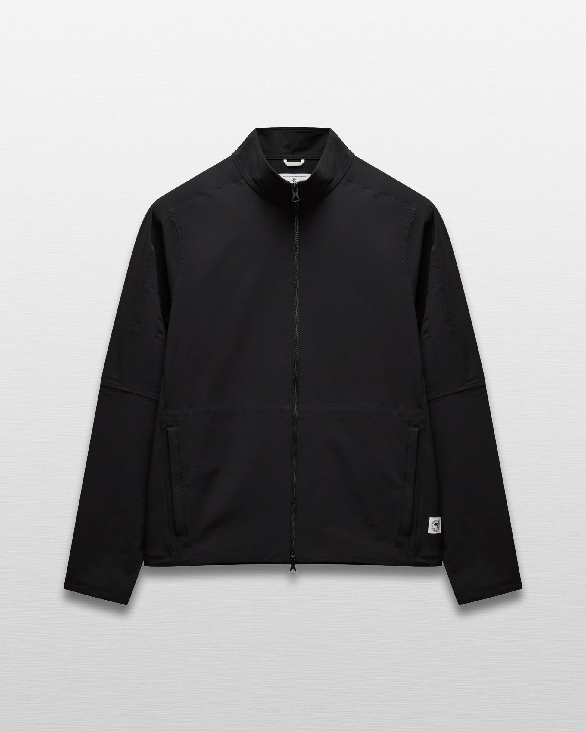 This two-way stretch nylon jacket is designed for movement on and off-field. Featuring an oxford weave reverse, it's abrasion-resistant and treated with a durable water-repellent finish. Designed with a mock neck collar, YKK Vislon two-way zipper, front zip welt pockets, half-elasticated cuffs, and an adjustable hem with shock cord.