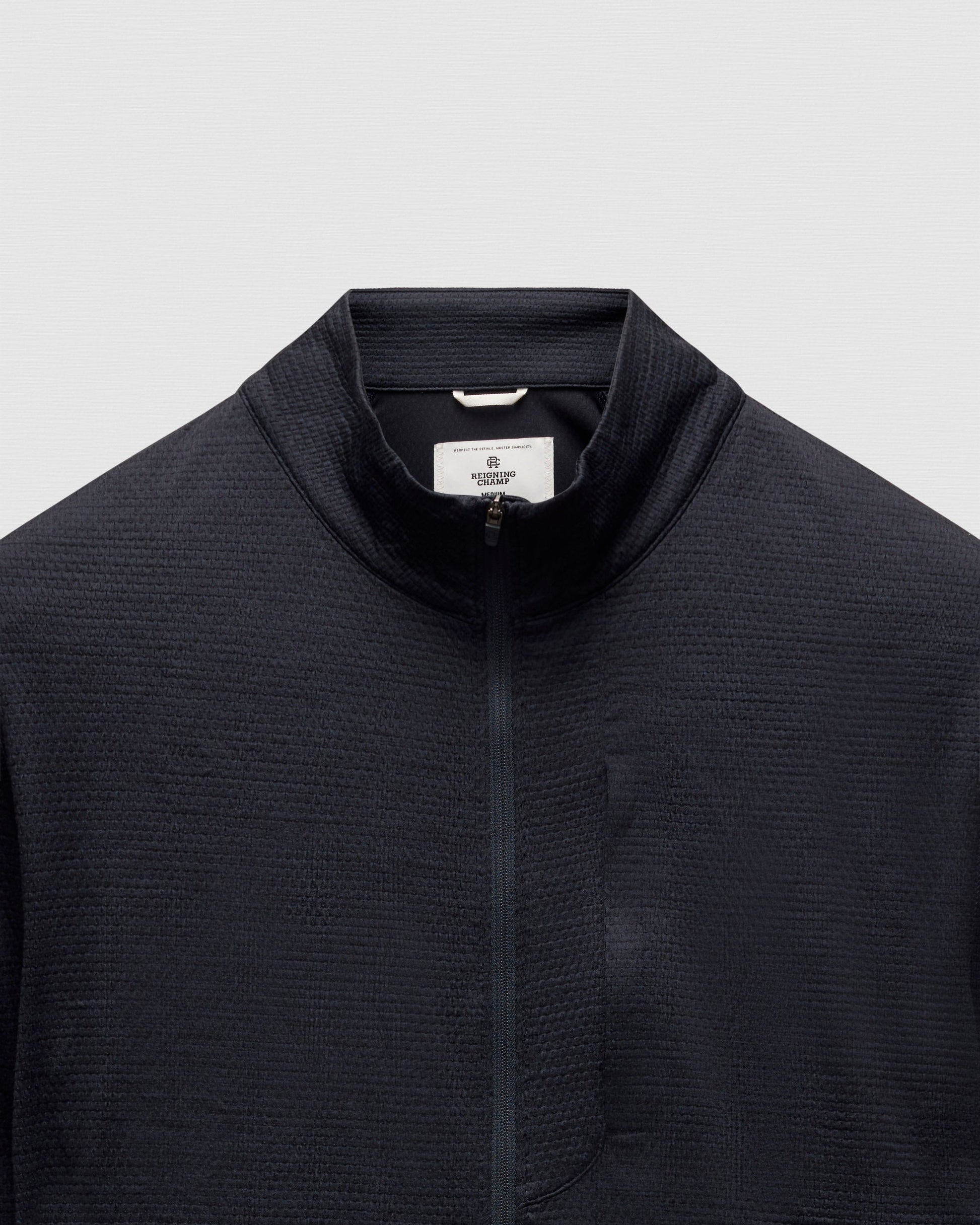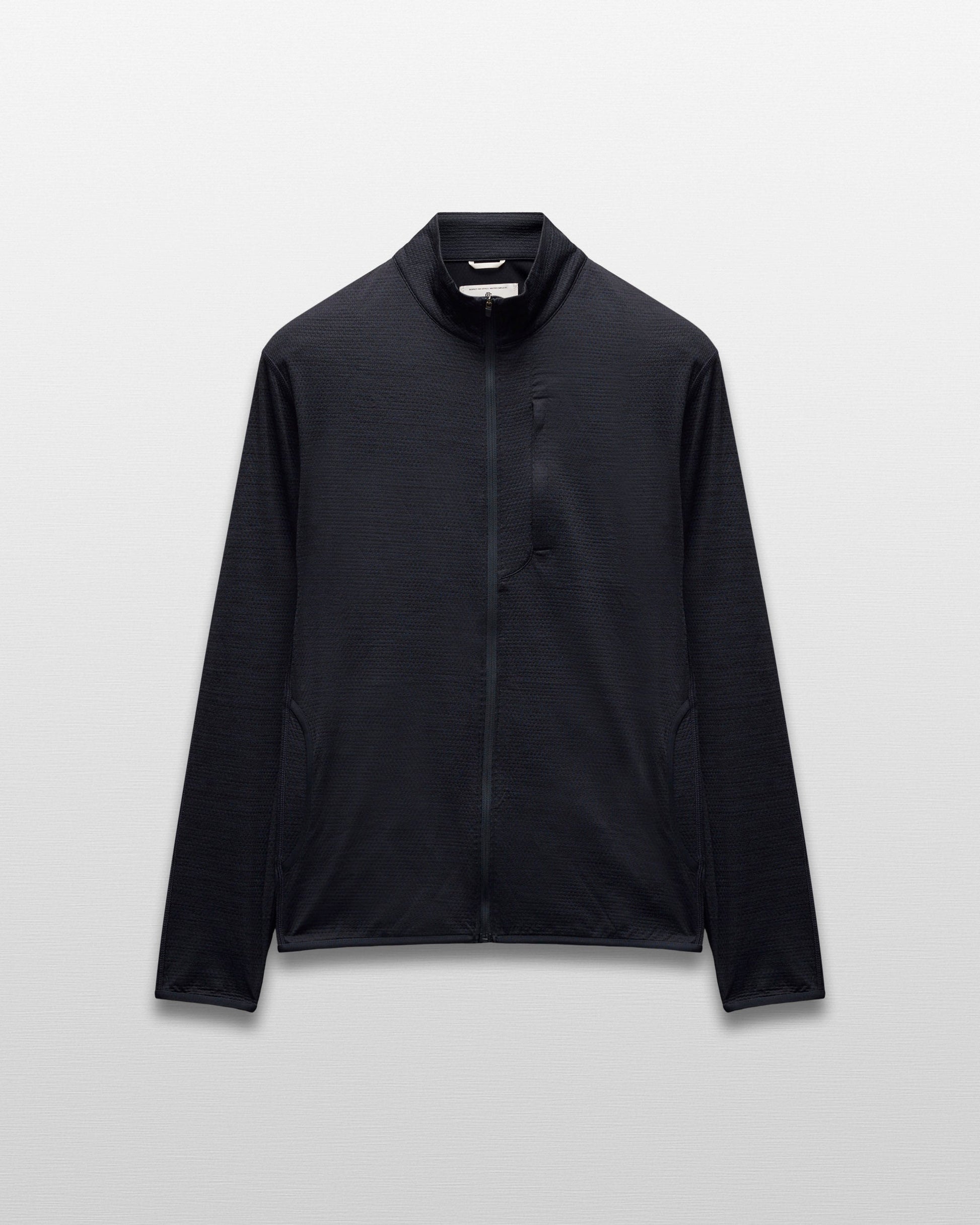 A moisture-wicking mesh track jacket designed to keep you cool in all conditions. Solotex® Mesh is a breathable performance fabric with dynamic stretch, high rebound, and a smooth knit reverse. Designed with a stand collar, YKK reverse coil zipper, a lapped zip chest pocket, and bound front pockets. Finished with bound cuffs and hem.