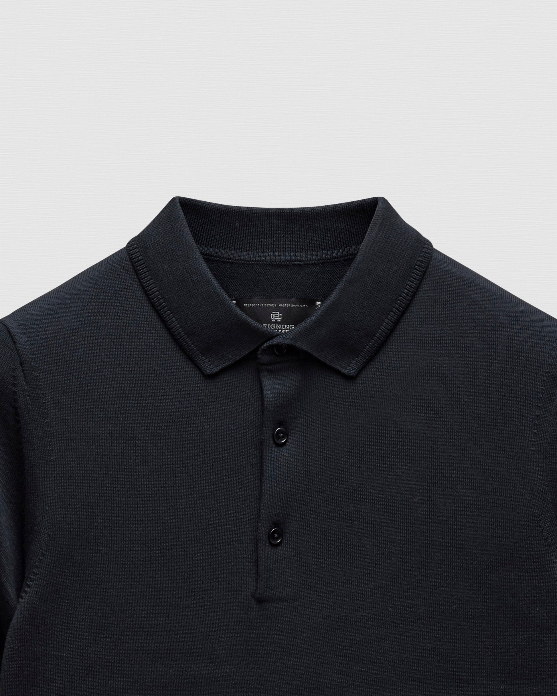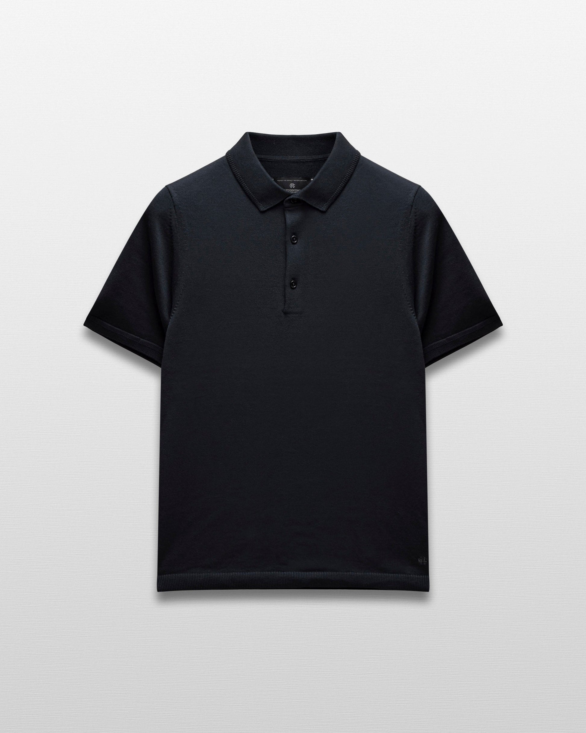 This knit polo is crafted from fine Supima cotton, prized for its exceptional softness, strength, and breathability. Featuring a standard fit, with fully fashioned seams. Designed with custom ribbing at the collar and sleeves, a 3-button placket, corozo buttons, and a lycra-blended hem for added durability.