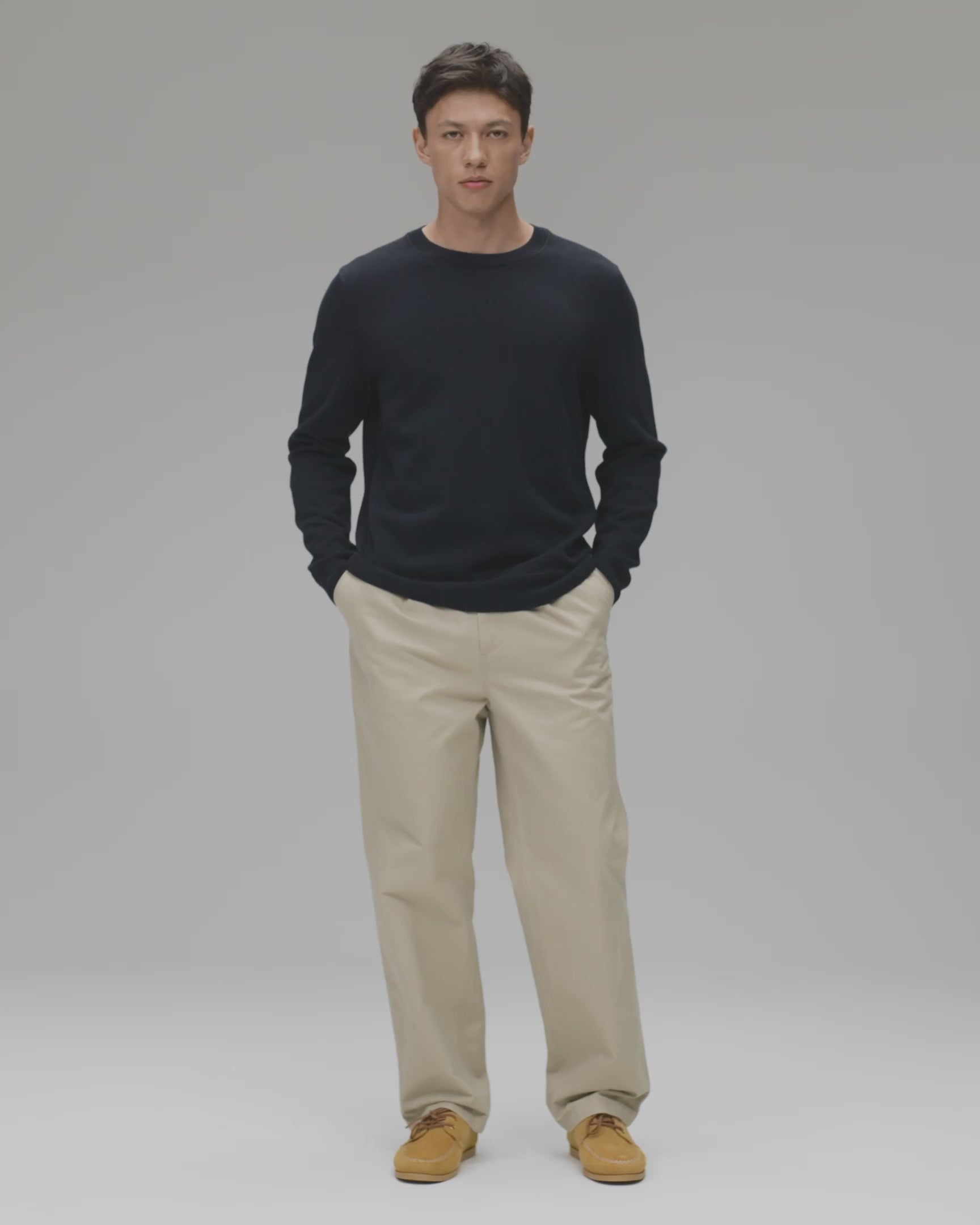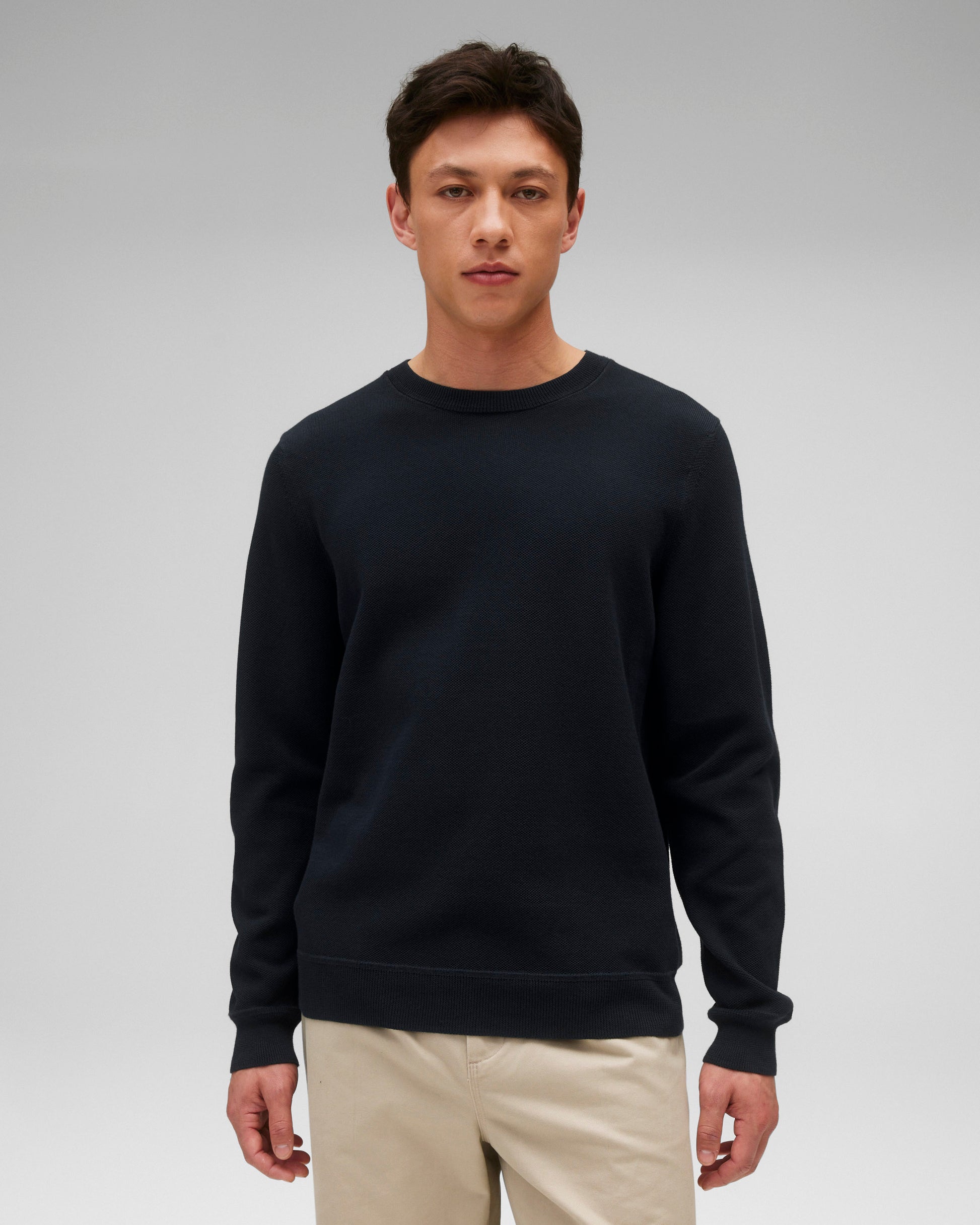 This pique knit crewneck sweater is crafted from fine-gauge Supima cotton, prized for its exceptional softness, strength, and breathability. Designed in a standard fit with fully fashioned seams, it features french shoulder seams, side gussets, and 1x1 rib collar, cuffs and hem.