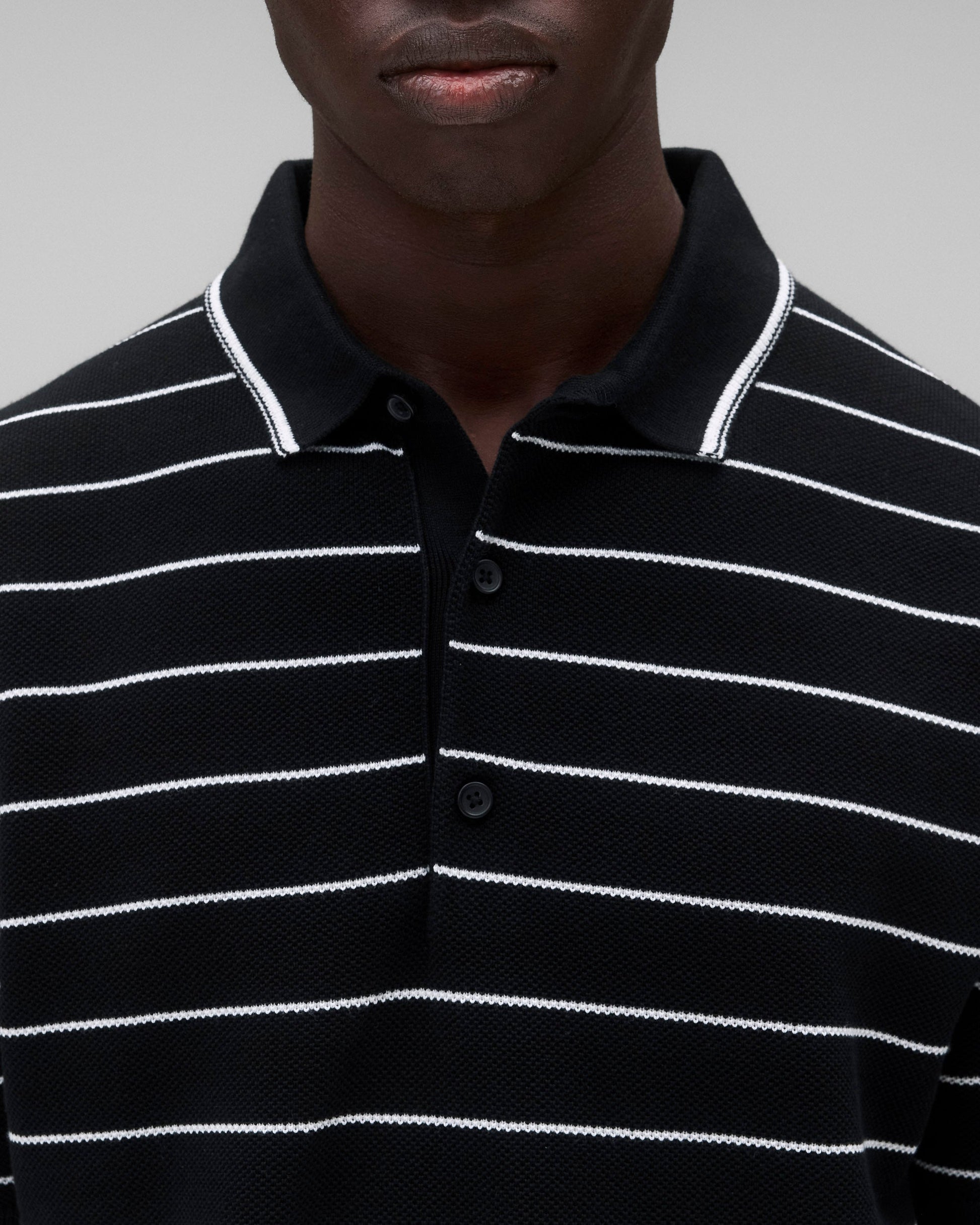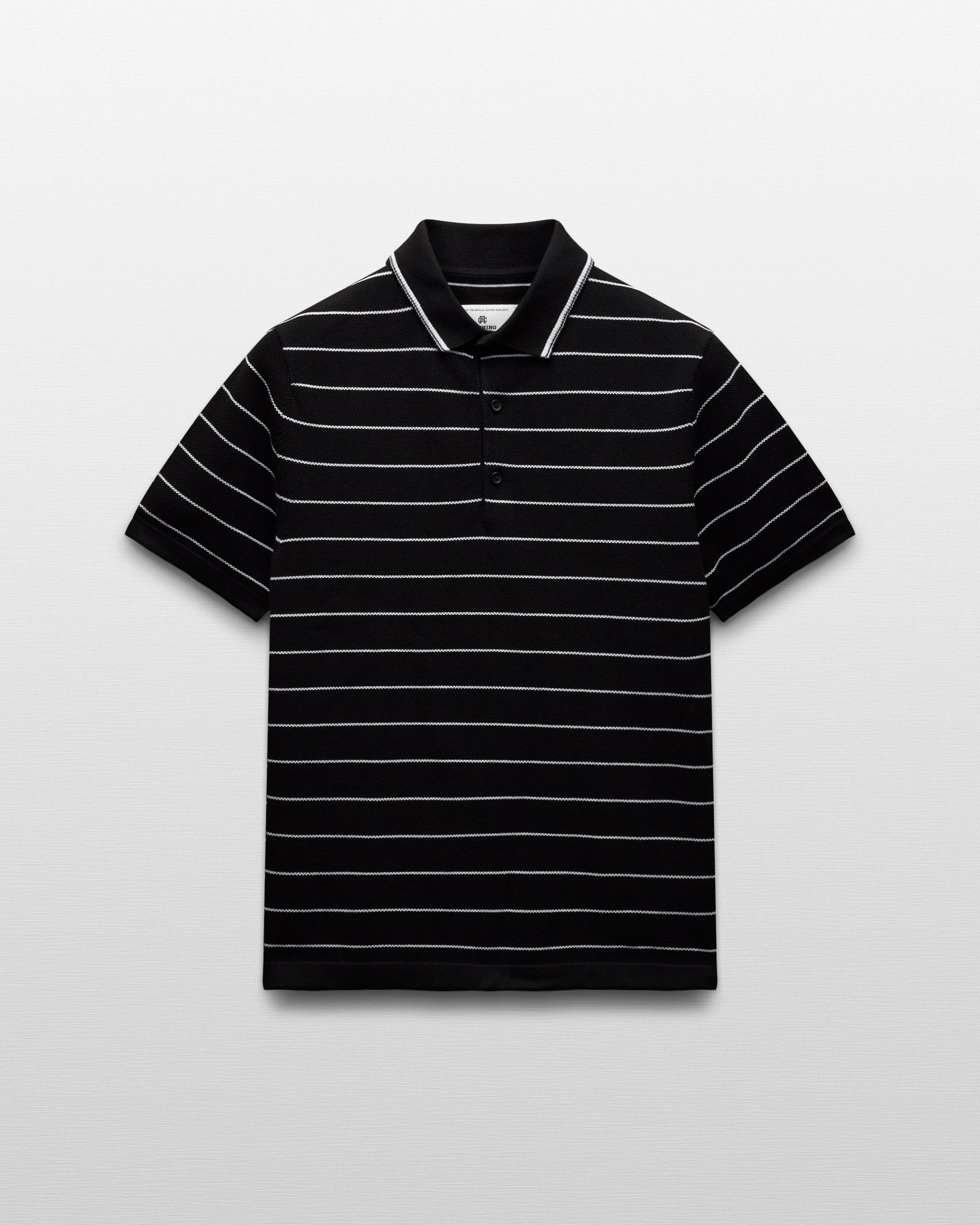 This pique knit polo is crafted from fine-gauge Supima cotton, prized for its exceptional softness, strength, and breathability. Designed in a standard fit with fully fashioned seams, it features a full needle stitch collar, a three-button placket, side gussets, and finished cuffs and hem.