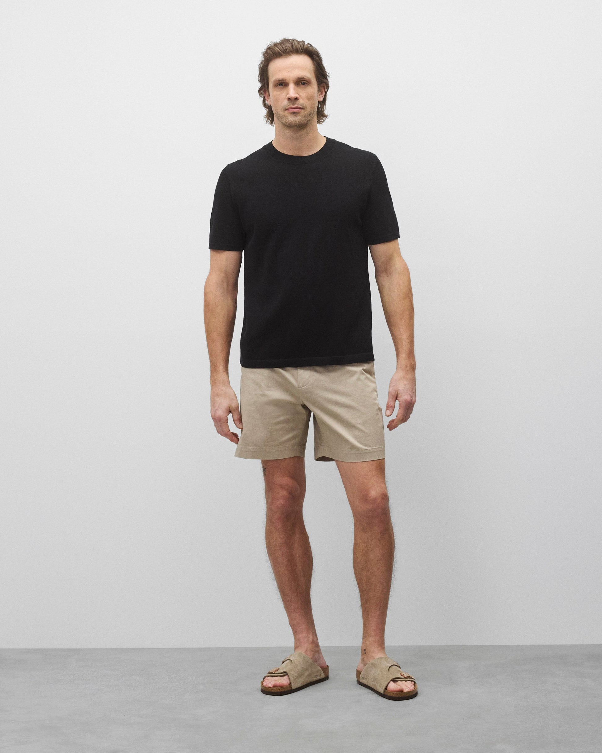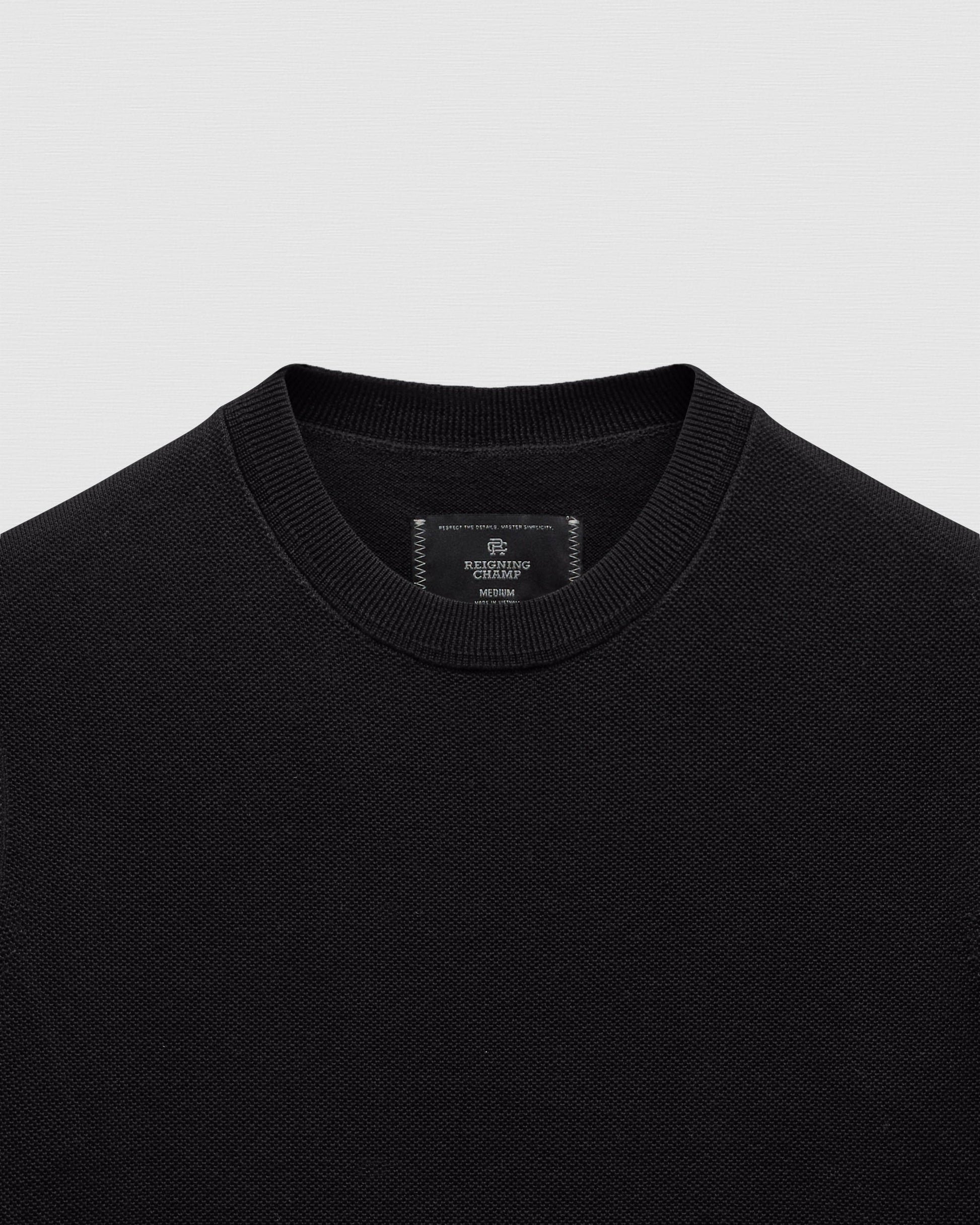 This pique knit T-shirt is crafted from fine Supima cotton, prized for its exceptional softness, strength, and breathability. Featuring a standard fit with fully fashioned seams. Designed with a 1x1 rib collar, side gussets, and finished cuffs and hem.